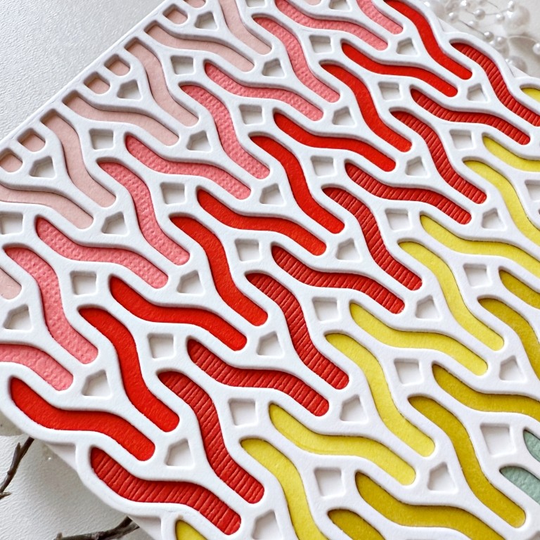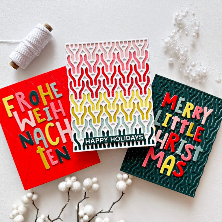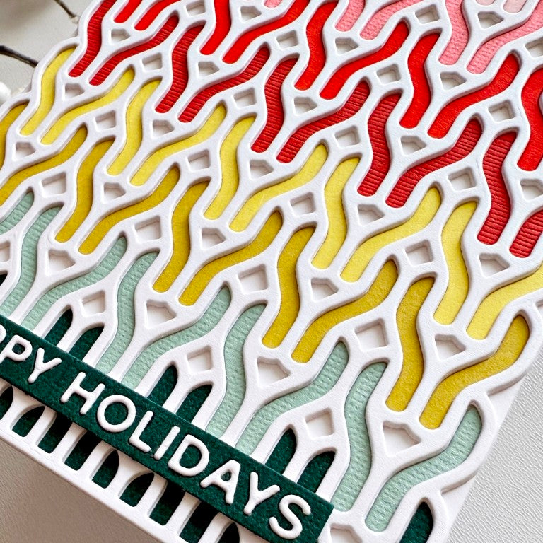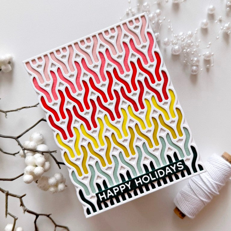 1 craft die in size 4.25 x 5.5" die featuring a patterned background that resembles a chunky knit - try out different colours to get different knitted styles.