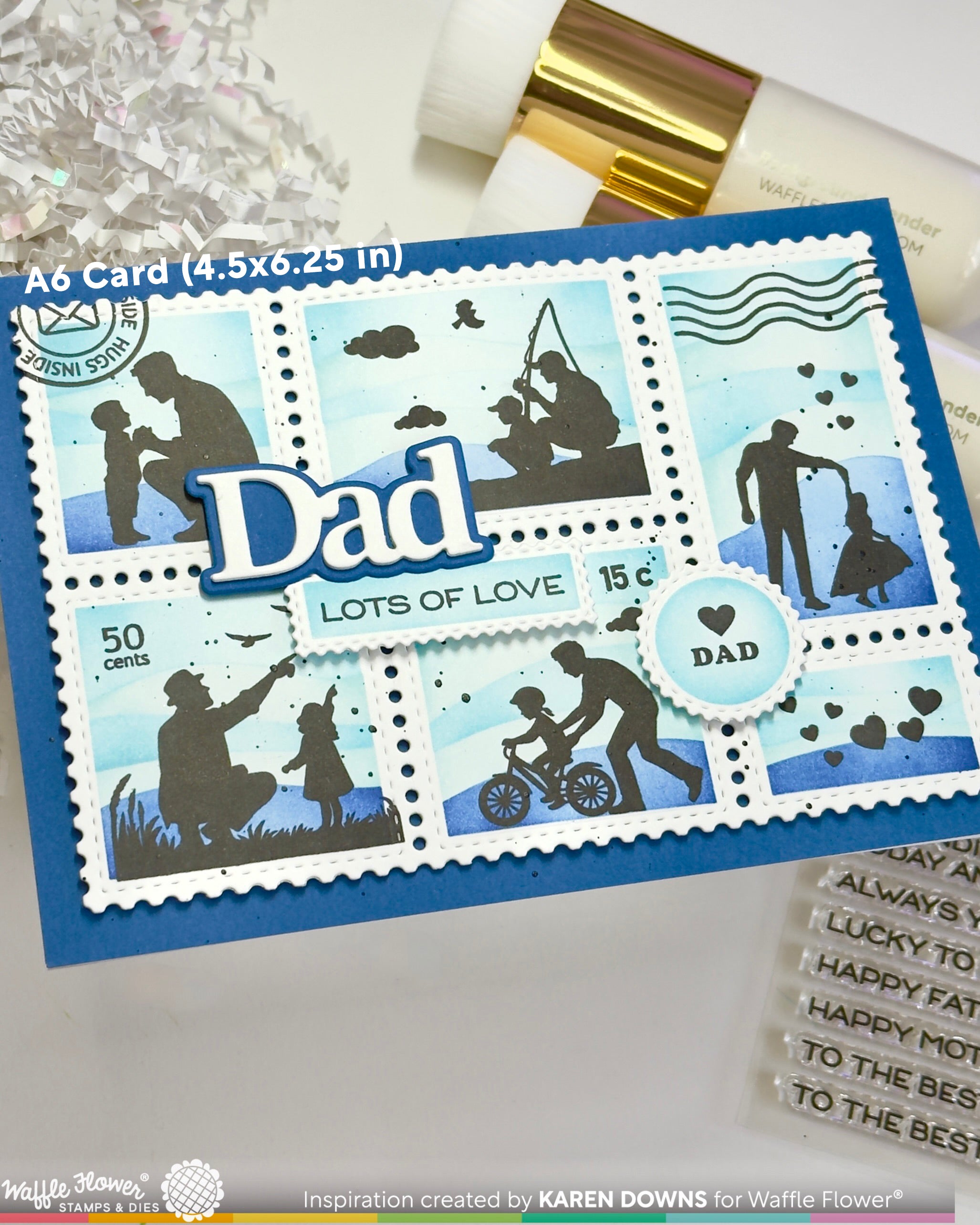 Just like the Blocks Stencil (A6) colors the panel from the same die set, this stencil helps you add color to the individual shapes. It’s a fun way to prepare colorful pieces for building your own Postage Collage designs.
