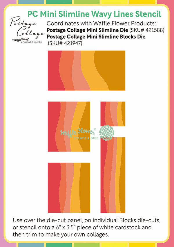 WF Postage Collage Mini Slimline Wavy Lines Stencil