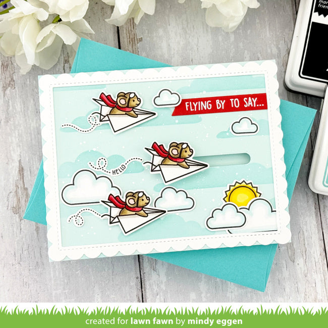 This 2-piece stencil set is designed to coordinate with Have a Mice Flight and Have a Mice Flight Lawn Cuts.