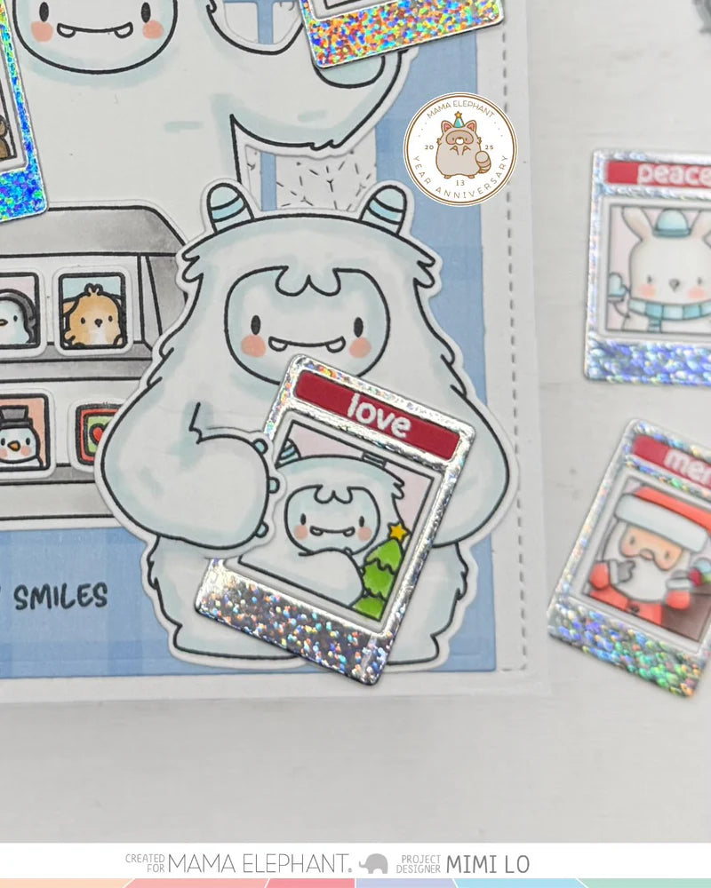 Lil Christmas Docket clear stamp set —inspired by the little stamp blocks we all loved as kids! This set captures the same charm and playful size of the stamps we grew up with. The term “Docket” here means a list of a curated collection of small stamps designed to work beautifully together, making them perfect for quick projects, embellishments, and layering. This very first set in the collection celebrates the holidays with Mama Elephant’s most beloved festive images—Santa, the elves, the reindeer, our snow friends and of course Mr. Yeti!