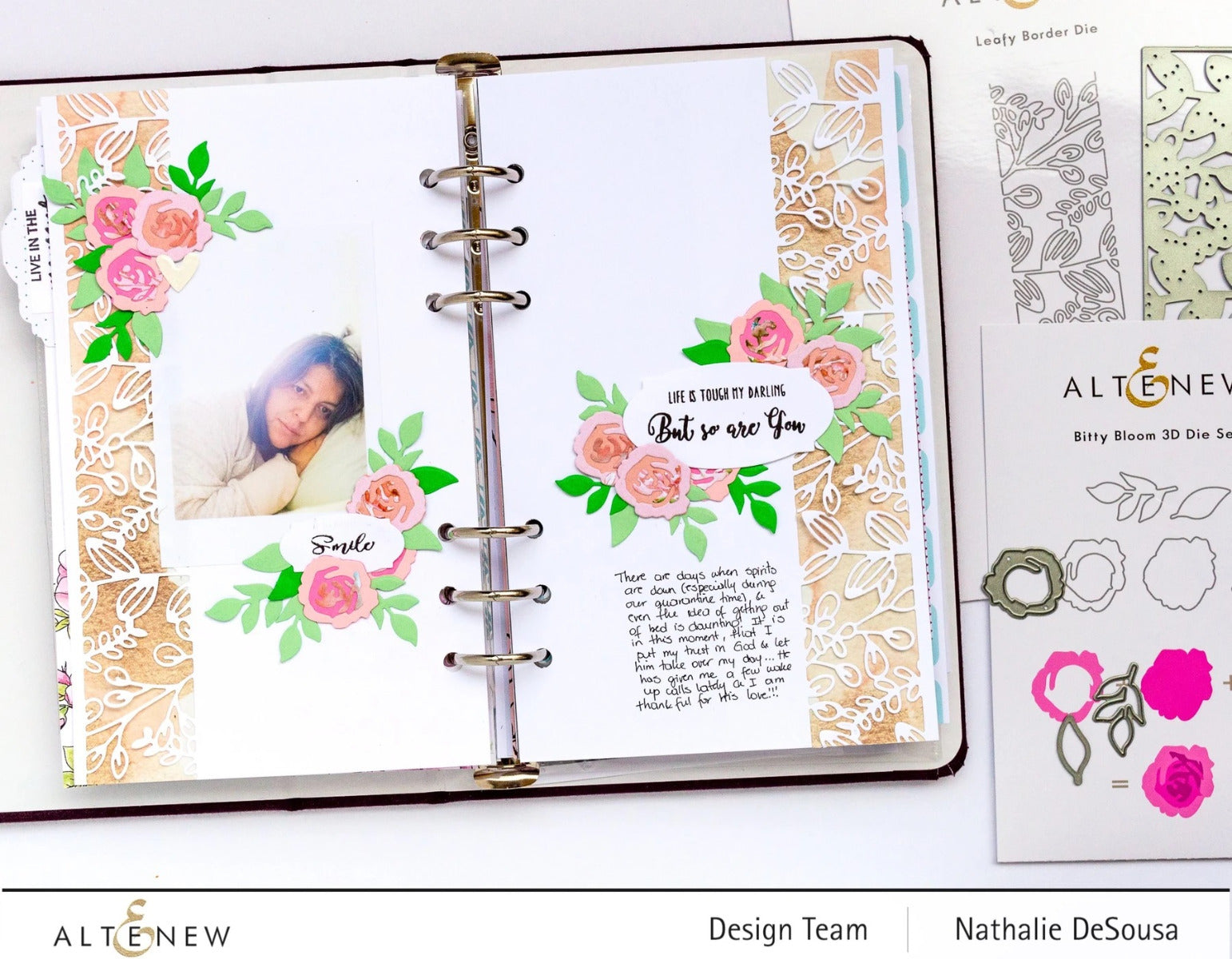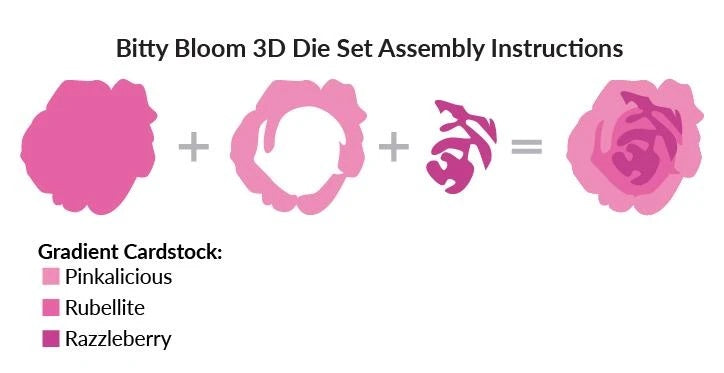 Although bitty, the possibilities with this die set are anything but! It features a sweet little 3-layer flower and two accompanying leaves. Layer up one flower for a cute little accent, or die-cut many in your favorite colors of cardstock for a whole garden!