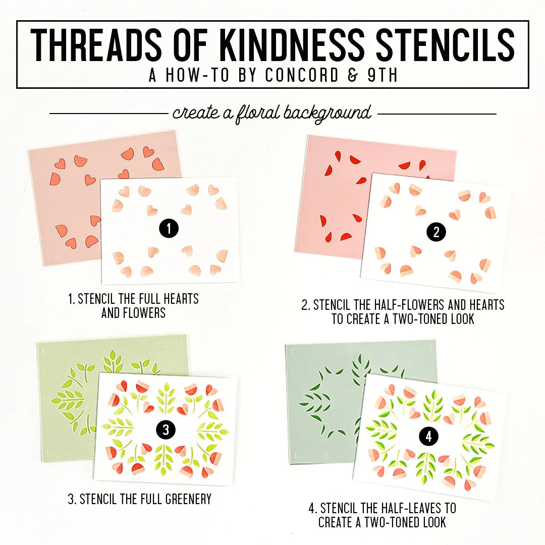 The Threads of Kindness Dies coordinate with the Threads of Kindness Stencil Pack to help create stitched focal points to add to your cards and other projects! Additionally these dies provide a scripty 'thanks' sentiment and a die to cut around the greetings in the coordinating Threads of Kindness Stamp Set. 4 pieces.