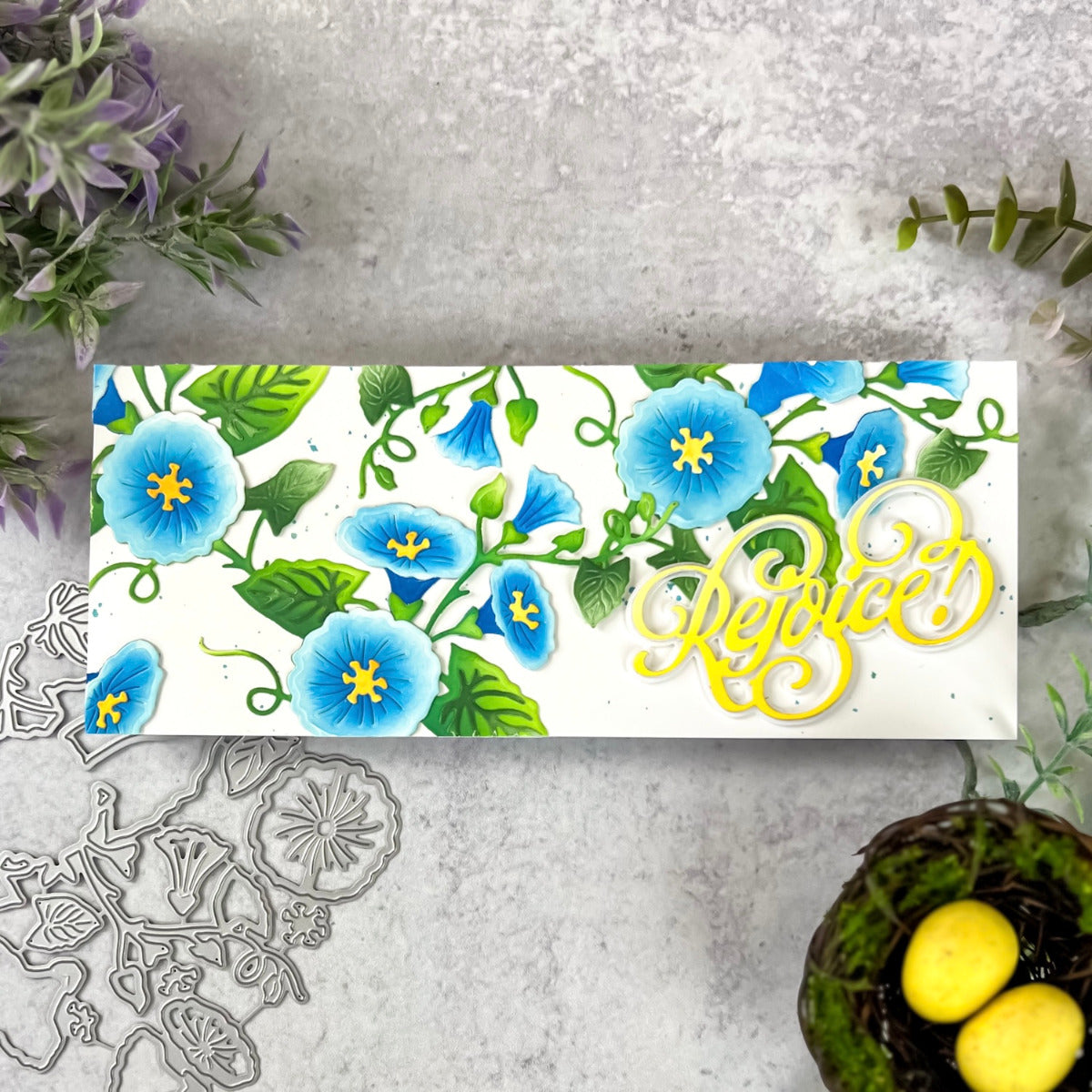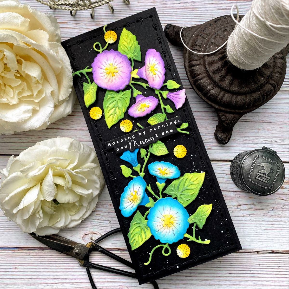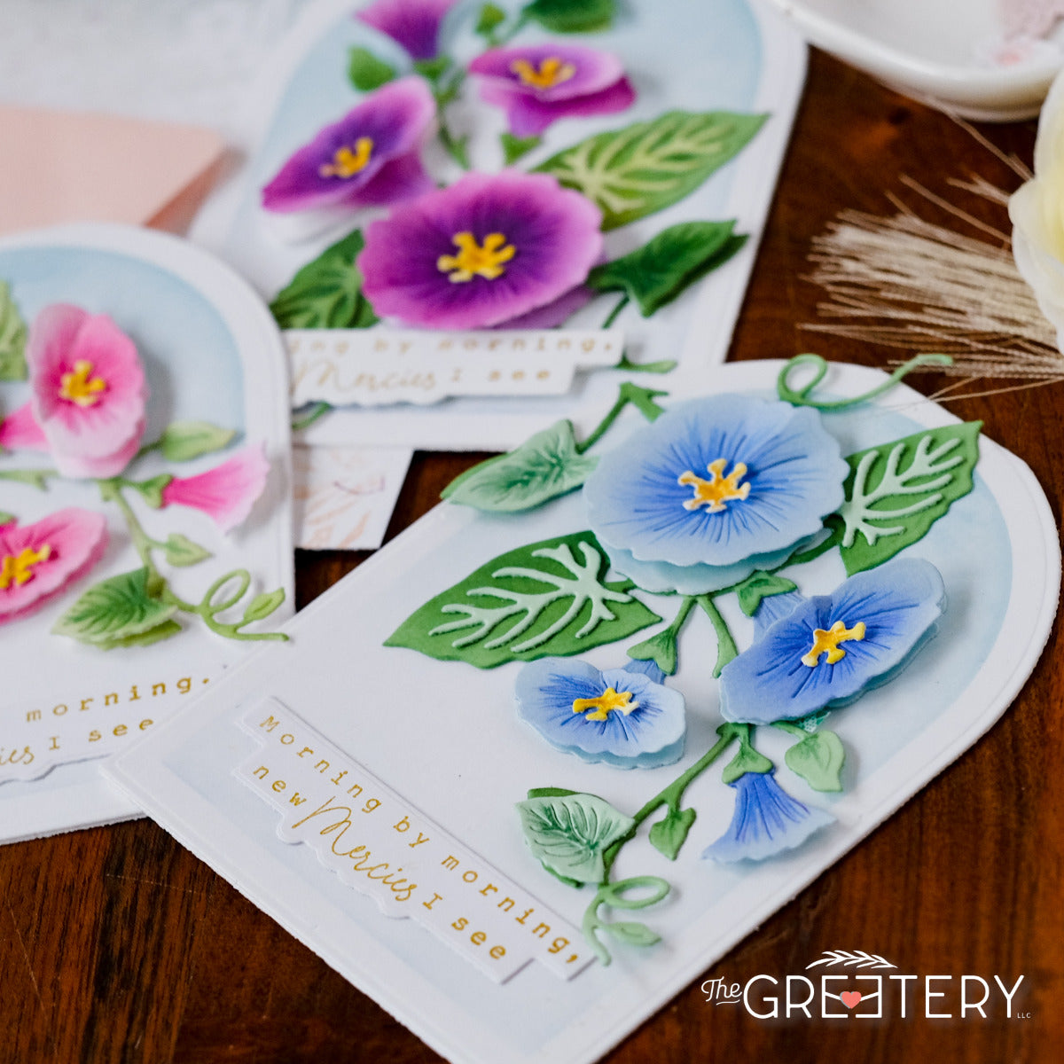 The BotaniCuts collection is a series of stand alone dies for cutting various botanical designs. This BotaniCuts Morning Glory set creates a beautiful cluster of layered Morning Glory blooms. Keep it simple by cutting them from colored cardstock, or have fun experimenting with your favorite coloring method, such as ink blending, watercolor, markers, and more for dramatic effects!