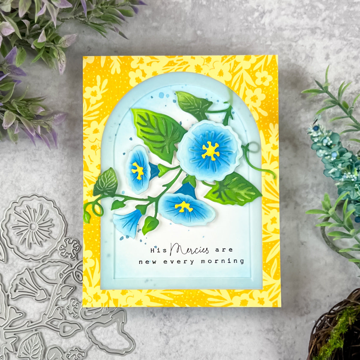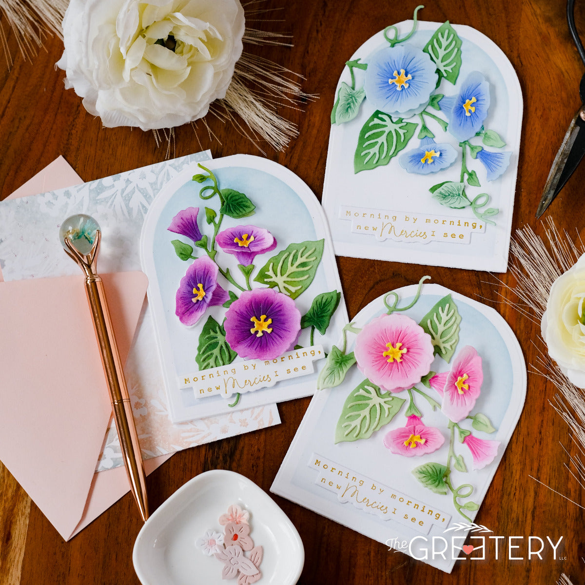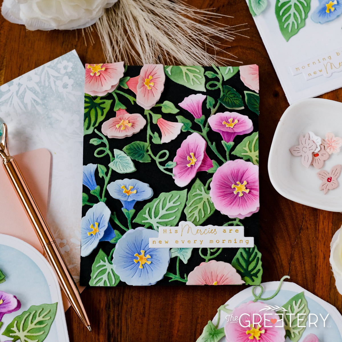 The BotaniCuts collection is a series of stand alone dies for cutting various botanical designs. This BotaniCuts Morning Glory set creates a beautiful cluster of layered Morning Glory blooms. Keep it simple by cutting them from colored cardstock, or have fun experimenting with your favorite coloring method, such as ink blending, watercolor, markers, and more for dramatic effects!