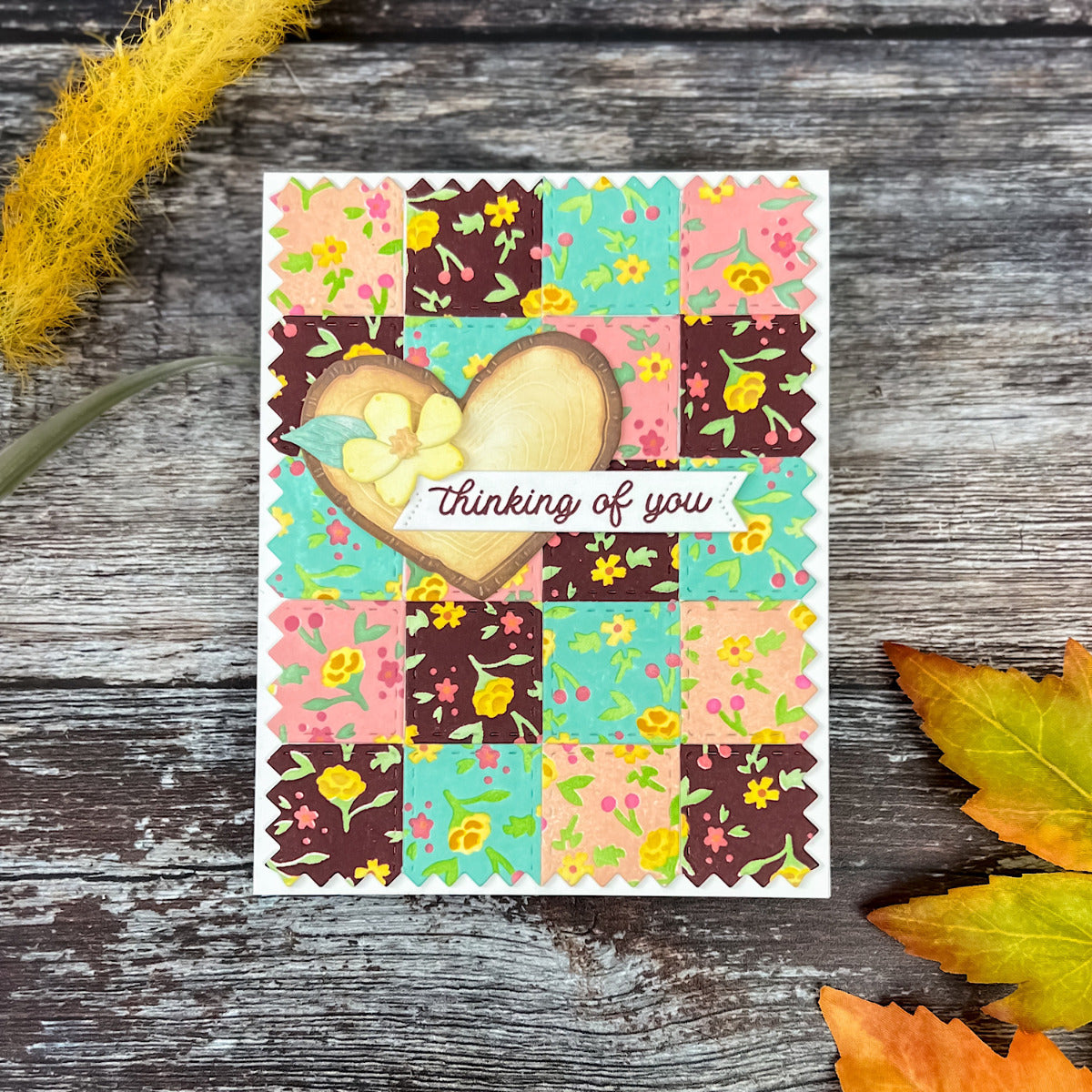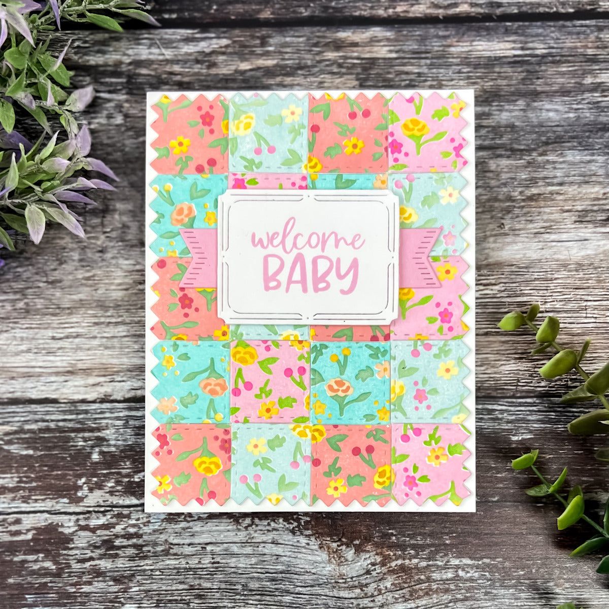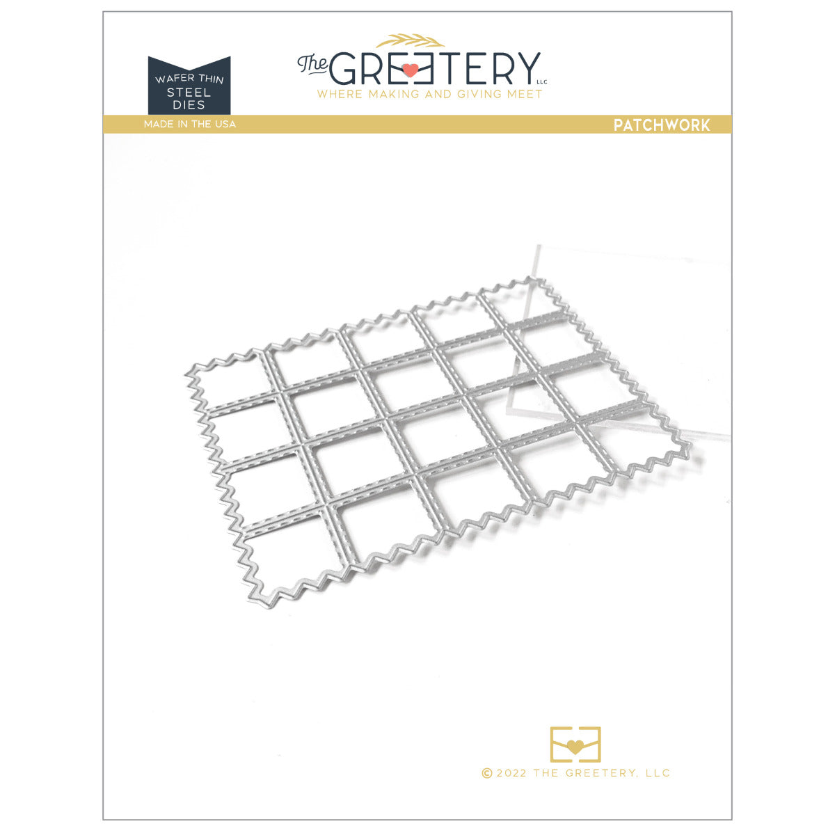 Have fun mixing and matching prints and patterns to create pretty patchwork designs using our Patchwork die! Cut this stitched panel from stamped, stenciled, or patterned papers, then snip them apart and piece them together to create quilt-like designs. Or simply use it as is for a clean and simple background. So many ways to play with this versatile die! It pairs wonderfully with our Print Shop: Calico stamp + stencil set to create vintage-inspired calico patchworks.