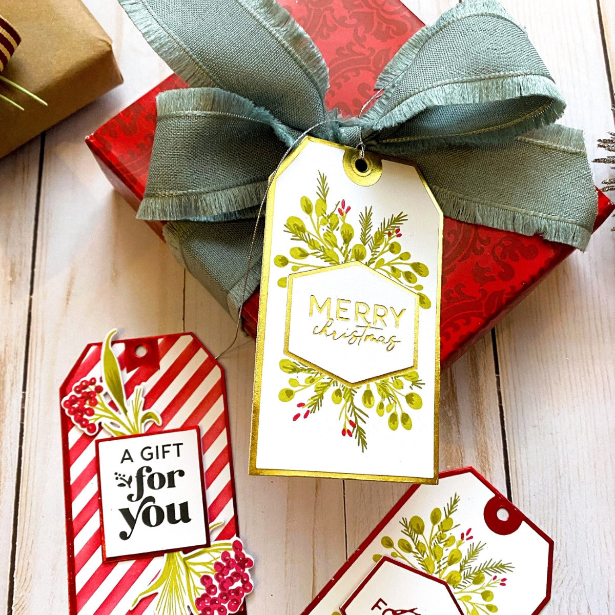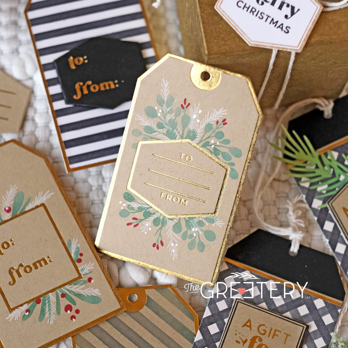 Make quick work of your tag-making with this generously-sized duo of tags! This die cut two tags, each measuring 2.5" x 4.25", and includes alignment squares for easy alignment with some other products from the Tag Team Duo collection, including: