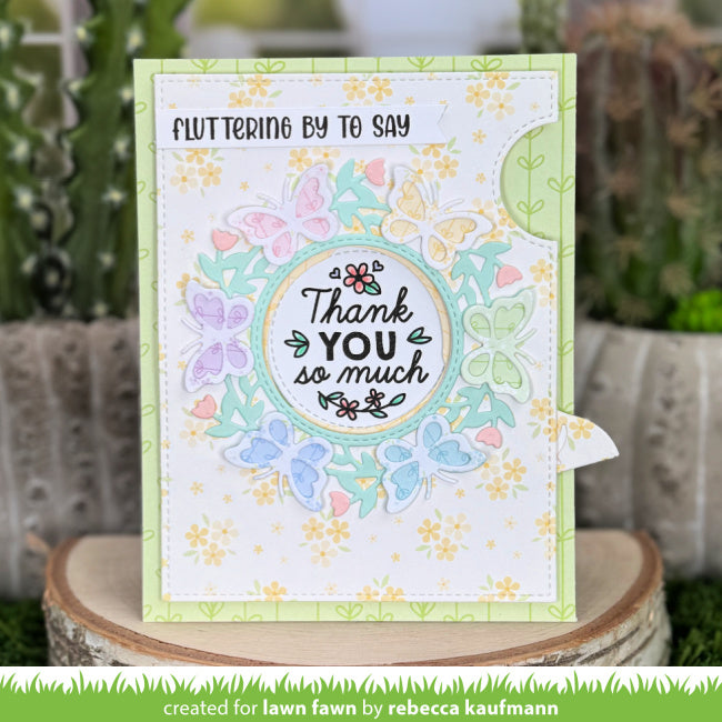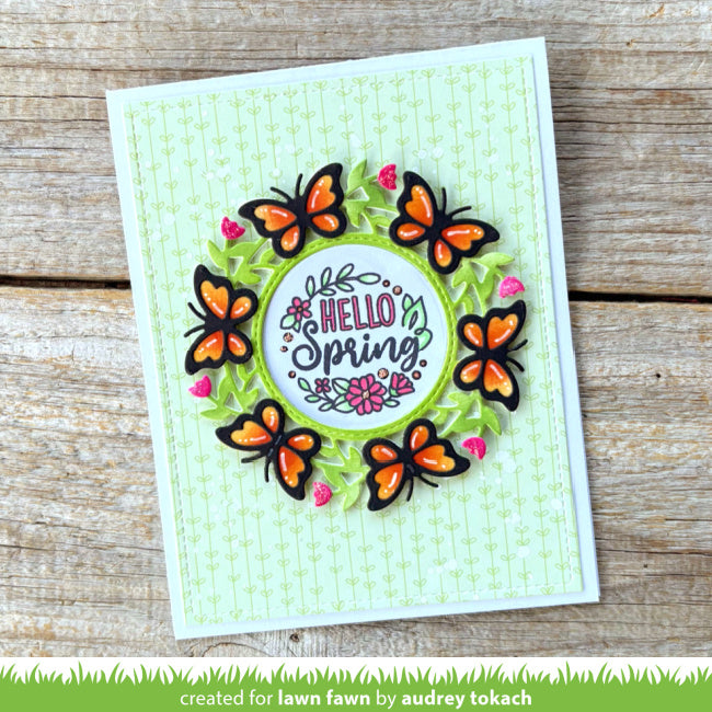 Pair this add-on set with Magic Iris and Magic Iris Add-On to create a project featuring a fluttery butterfly wreath frame that opens to reveal a surprise! This wreath frame is also an amazing card feature on its own!