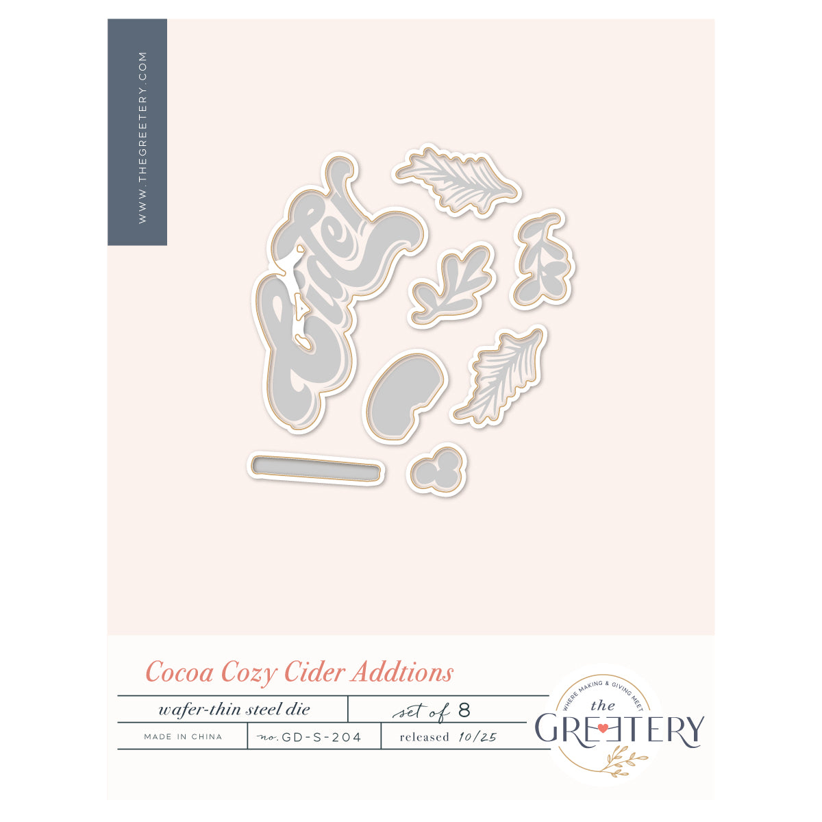 This die is designed to coordinate with our Cocoa Cozy Cider Additions stamp set, allowing you to cut the images from that set for more layering options.