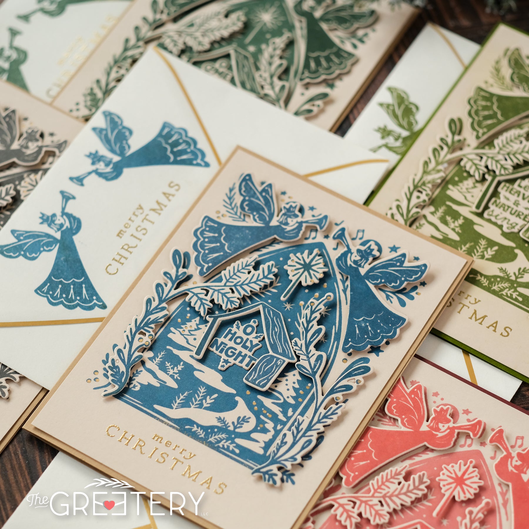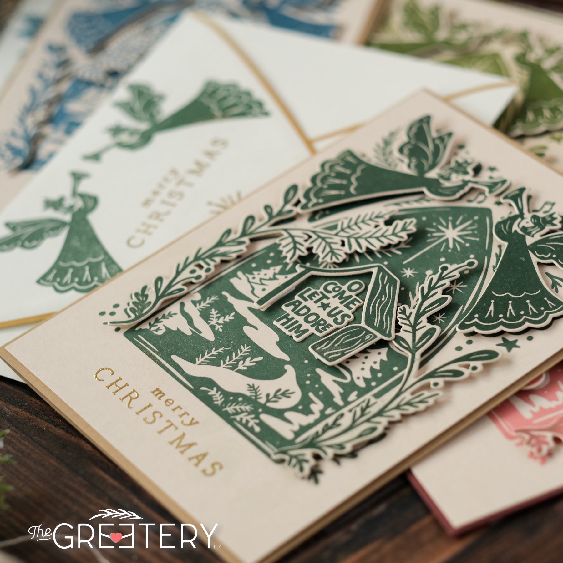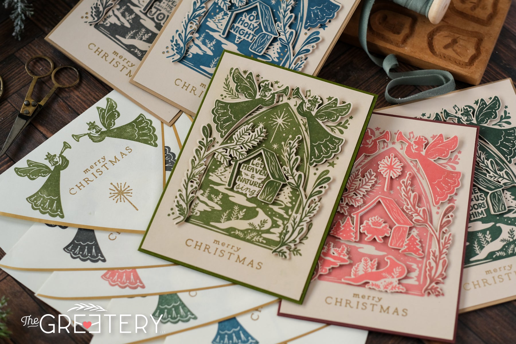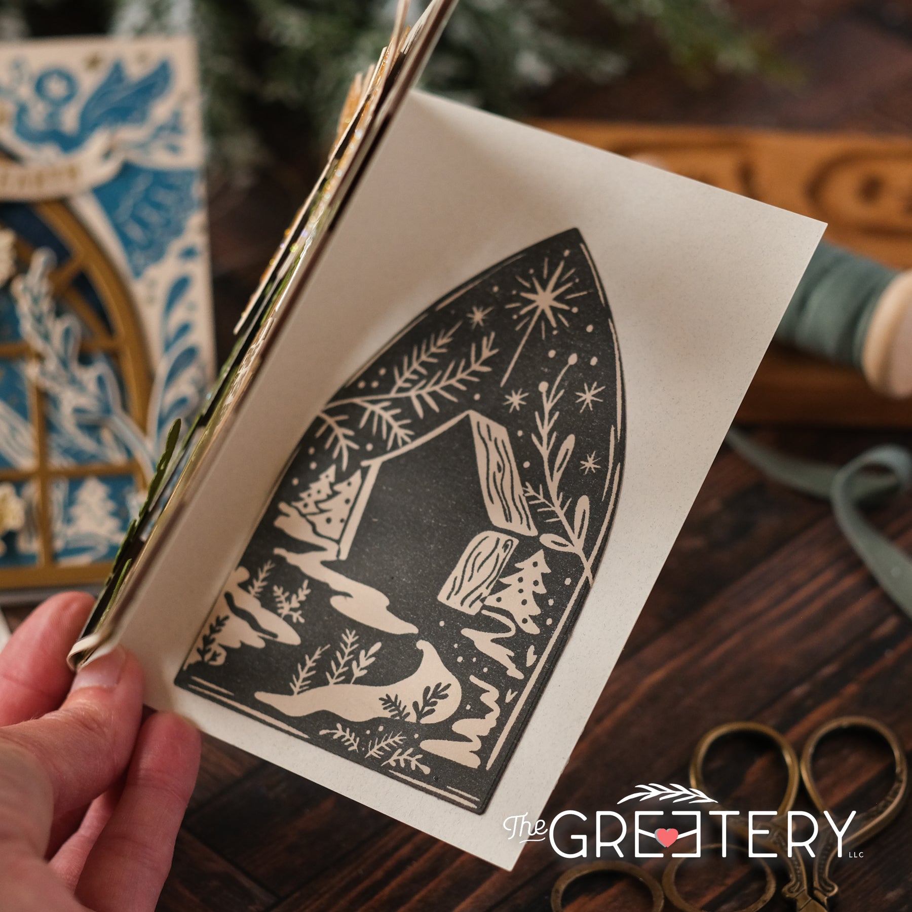 Capturing the look of traditional linocut print making, our Lovely Linocuts Nativity stamp features a detailed stamp and go scene, perfect for quick holiday cards. For more layering and design options. this stamp coordinates with our Cathedral die, opening up some fun layering options. For creating projects with even more layers and details, consider combining this background stamp with the Lovely Linocuts: Nativity stamp set. The stamp set features many of the same elements as this one-step background, but in the form of individual images, which can be diecut with the matching die and layered over the background. Check out the design options about with this product suite!