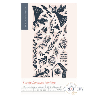 Inspired by the linocut method of printmaking, where designs are hand-carved into sheets of linoleum, our Lovely Linocuts Nativity set features many of the same elements found in the coordinating rubber background stamp. The individual images found in this set allow you to build your own designs, or layer the images over the background for more dimensional projects! Our coordinating die (sold separately), allows you to cut out the images and sentiments from this set.