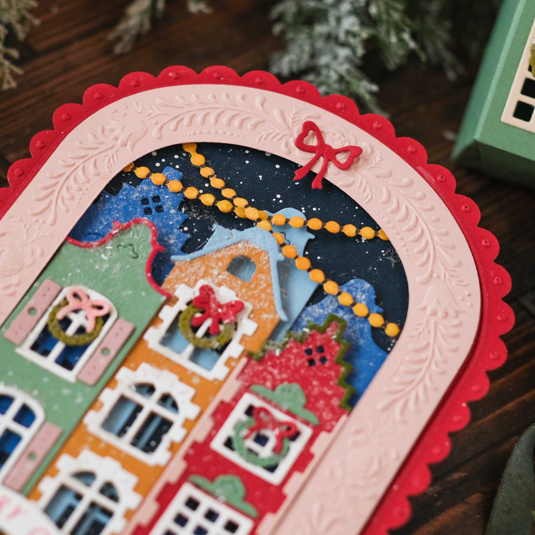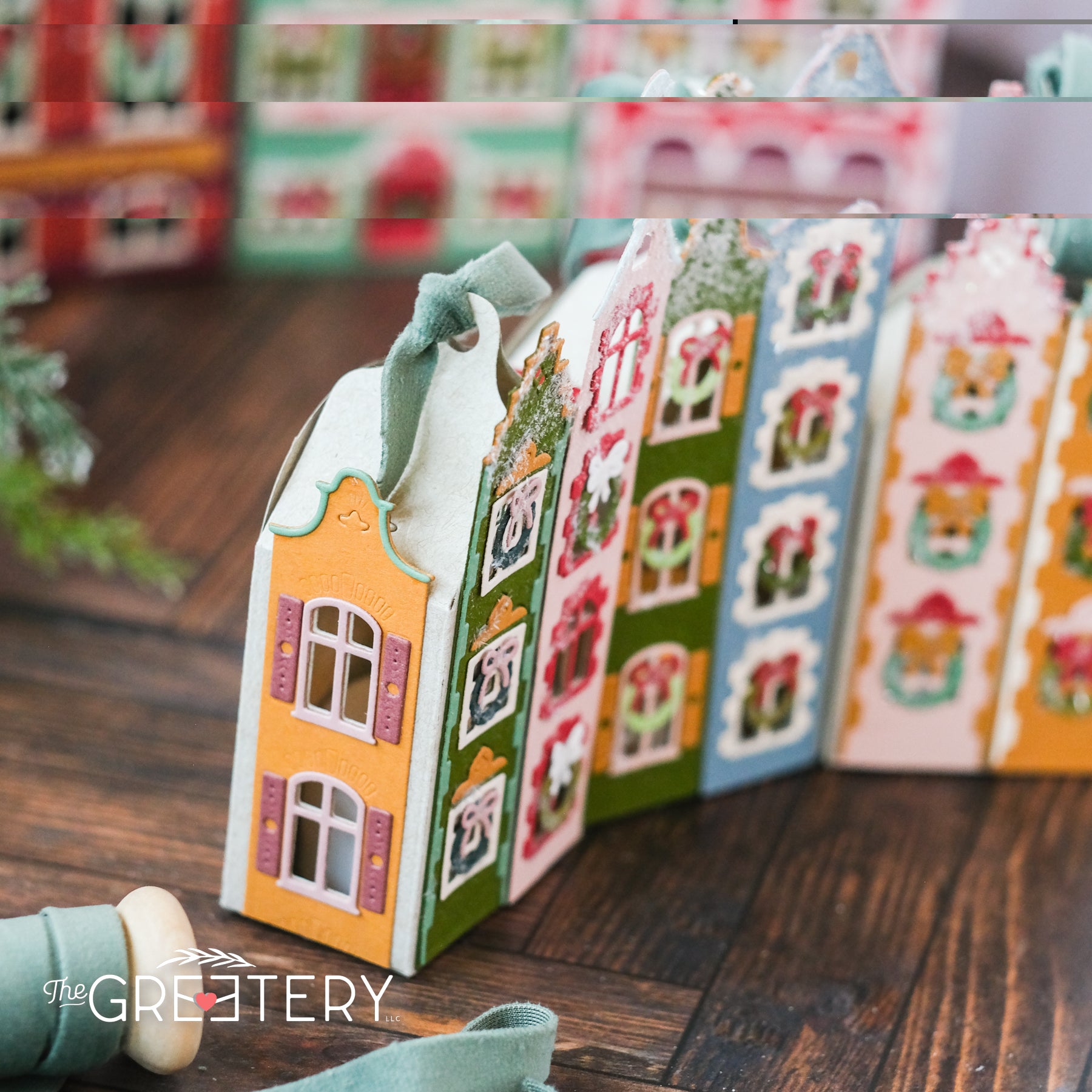 To create a whole village, pair this die with our larger Market Place No. 1, Market Place No. 2, Market Place No. 3 dies! Our coordinating Market Place Holiday Festoons die allows you to deck out these sweet buildings with wreaths and garlands for the holidays.