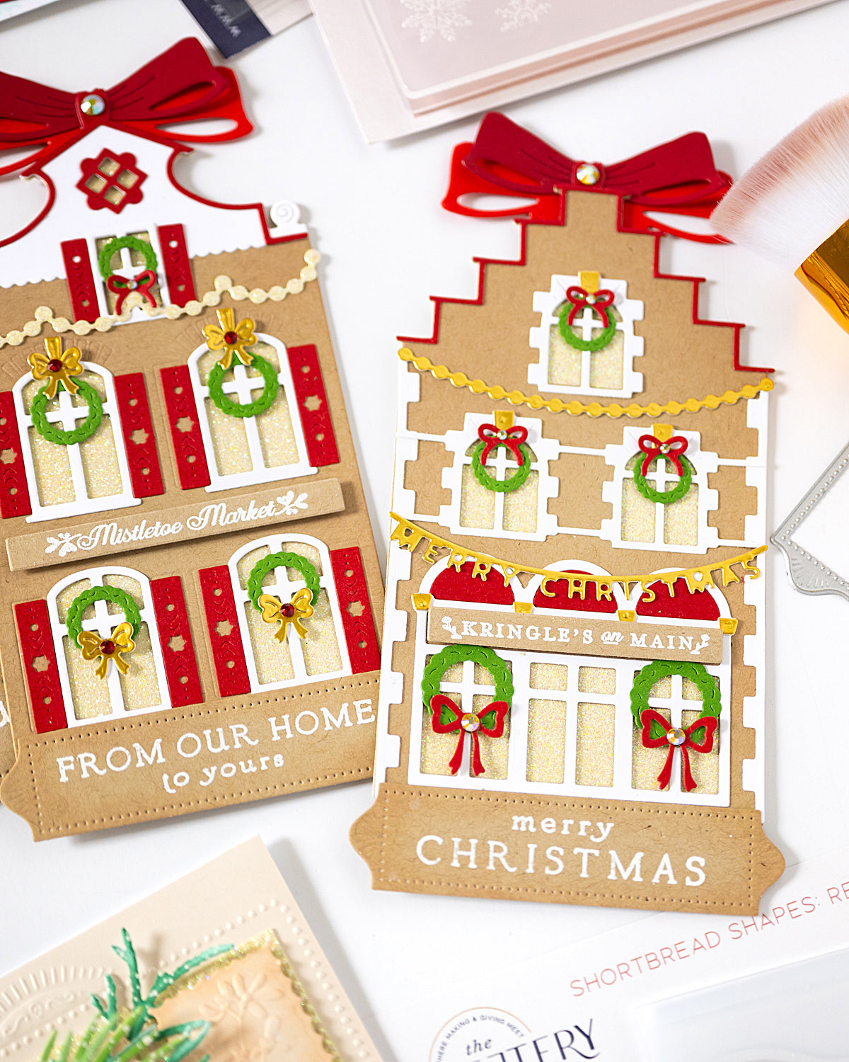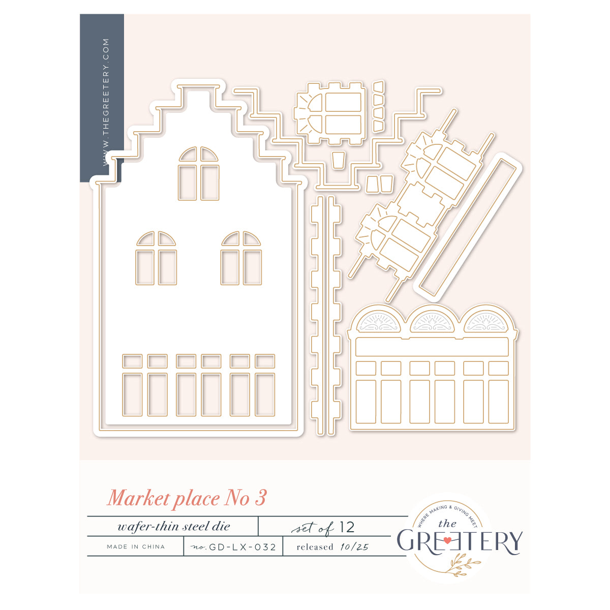 To create a whole village, pair this die with Market Place No. 1, Market Place No. 2 and Market Place Mini dies! The coordinating Market Place Holiday stamp set allows you to add shop names to the sign, while the Market Place Holiday Festoons die allows you to deck out these sweet buildings with wreaths and garlands for the holidays.