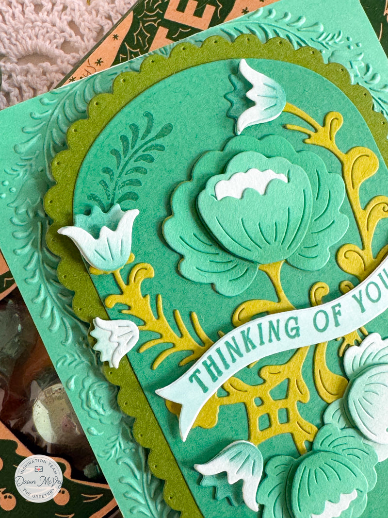 Inspired by the traditional style of folk art rosemaling, this detailed die can stand alone, or be combined with the other products from our Rosemal Reflections product suite. When used on its own, this floral cluster is sized so that two assembled clusters nicely fill the interior of the larger scalloped oval from our Capsule Basics die, making it a great set for 5" x 7" cards (or use a single cluster as a focal point on A2-sized cards!). This set also includes an "embossing die" that can be used to add embossed flourishes that surround the diecut cluster. This design is also available in a smaller mini die version as well!