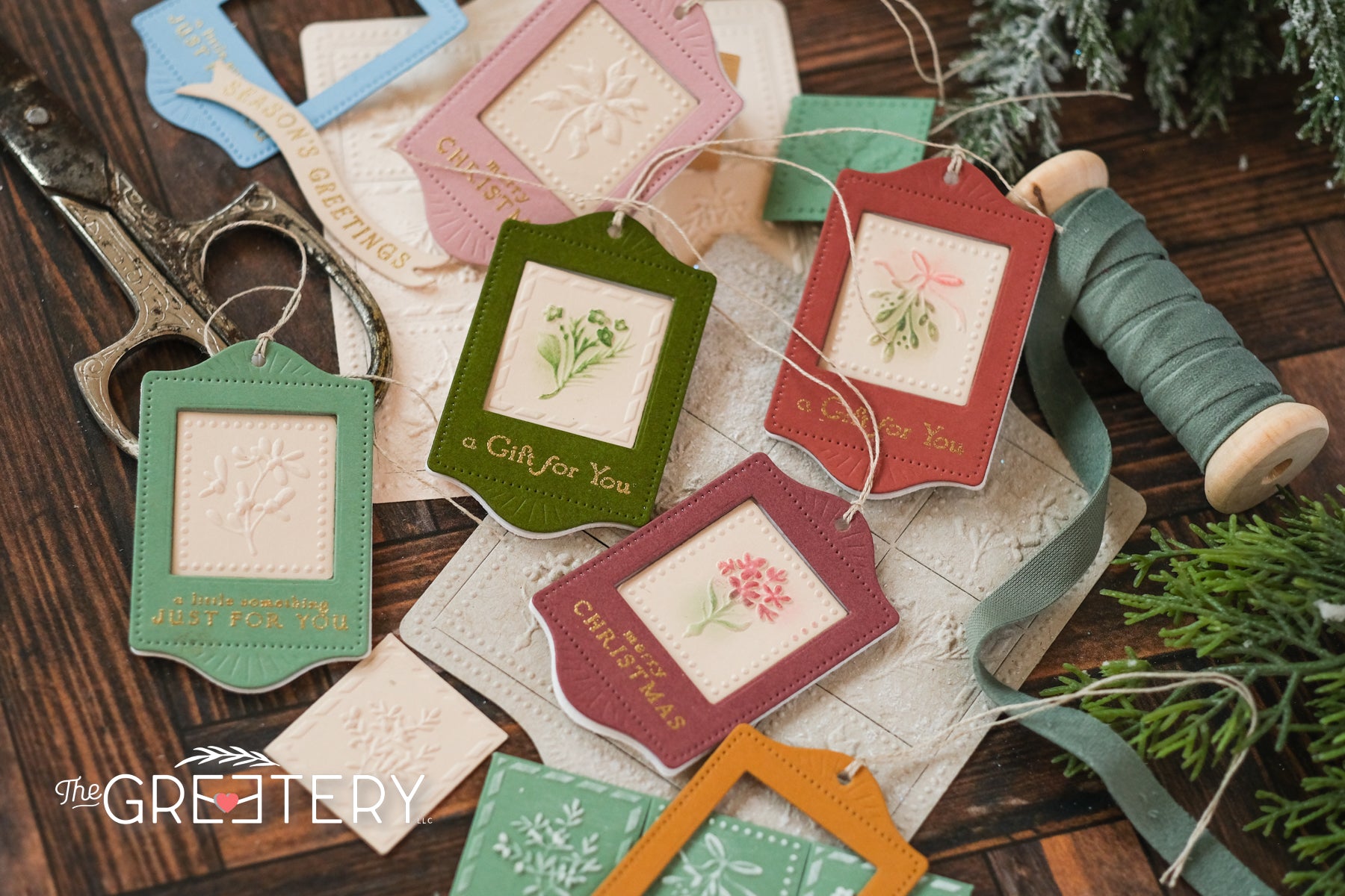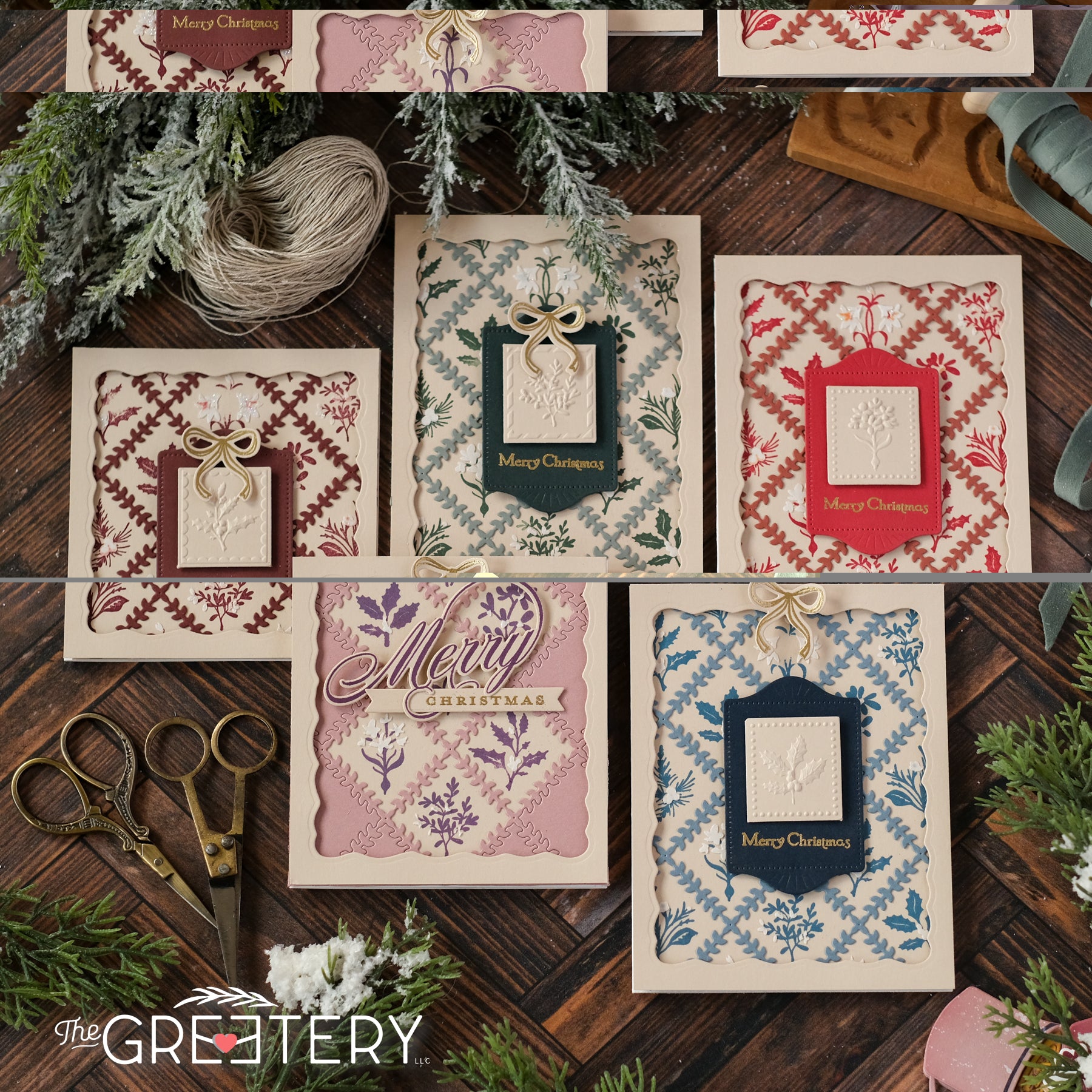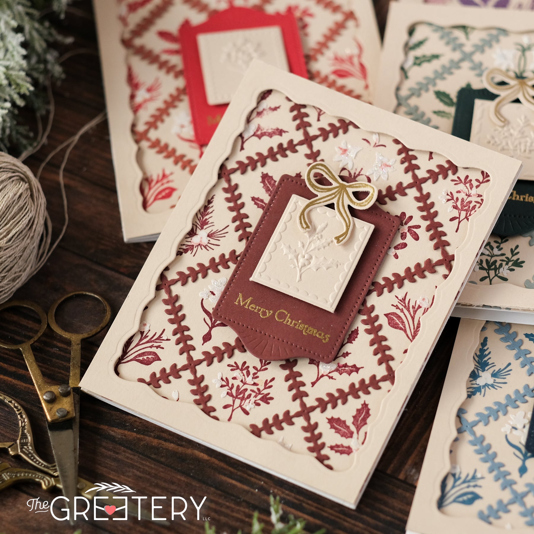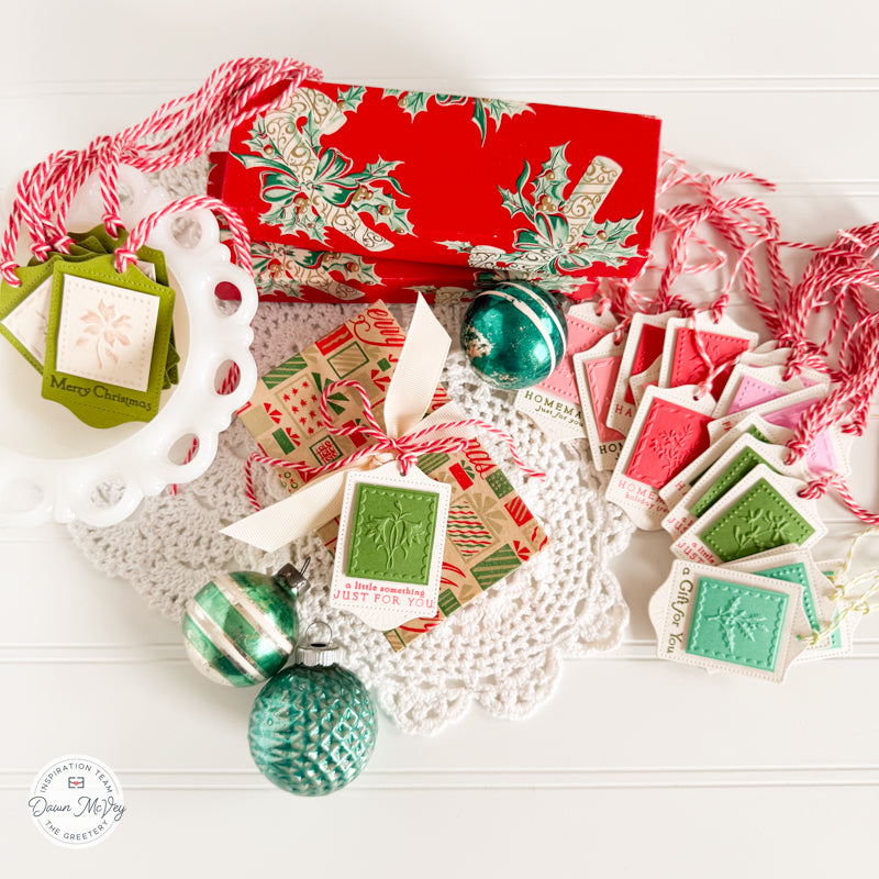 Our Shortbread Shapes product suite was Inspired by vintage shortbread baking pans. This set of two labels coordinates with our Shortbread Shapes Rectangle die and embossing folder, offering the perfect way to layer a sentiment. The sentiments from our Simple Holiday Sentiments stamp set and Simple Holiday Mini Sentiments set fit on the large and small labels respectively. The simple square die from the set coordinates with the embossed squares in the Shortbread Shapes: Holiday Rectangle embossing folder.