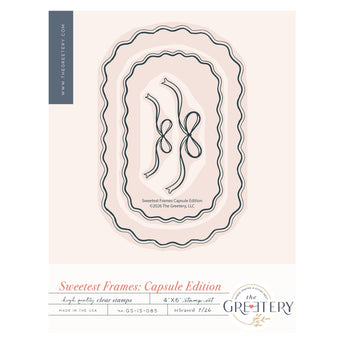 Sweet as can be, you'll love this Capsule-shaped version of our classic Sweetest Frames set! This set features flowy frames in two sizes, plus some sweet bows. Pair these frames with the matching Sweetest Frames: Capsule Edition dies to cut out frames, mats, or windows, sized perfectly to coordinate with the capsule basics die.