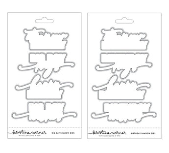 Use the “BIG DAY” greeting die and any of the script greeting dies from the Big Day Birthday Dies with these shadow dies to create a complete greeting. 4 pieces.
