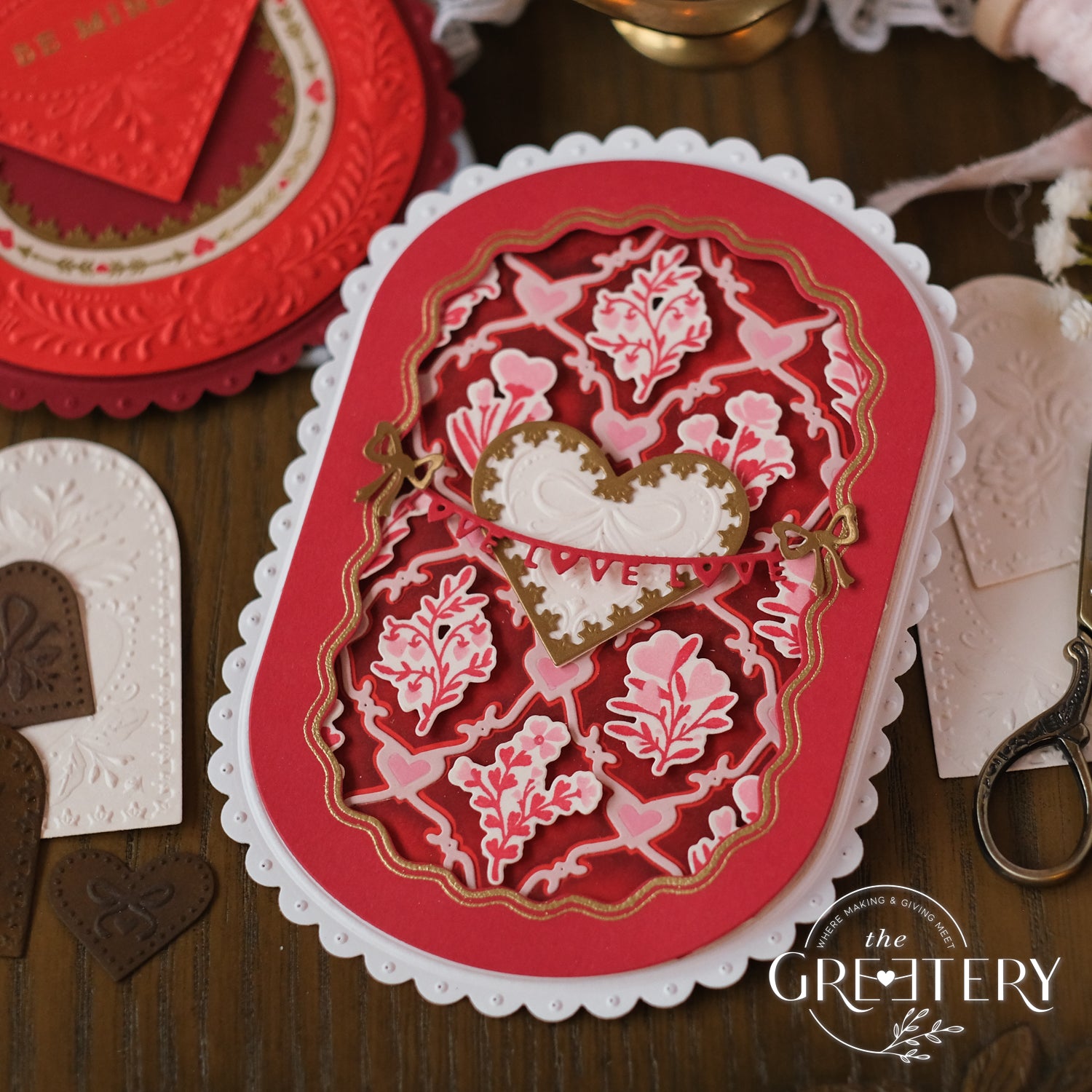 Full of heart from top to bottom, our Whole Hearted die cuts a plethora of hearts in one easy pass through your diecut machine. Use these hearts in a variety of ways - one of our favorites is to pair it with our Coquette Hearts embossing folder! The largest three heart shapes in our Whole Hearted die also coordinate with our Filigree Hearts die, allowing you to add a pretty, delicate border.