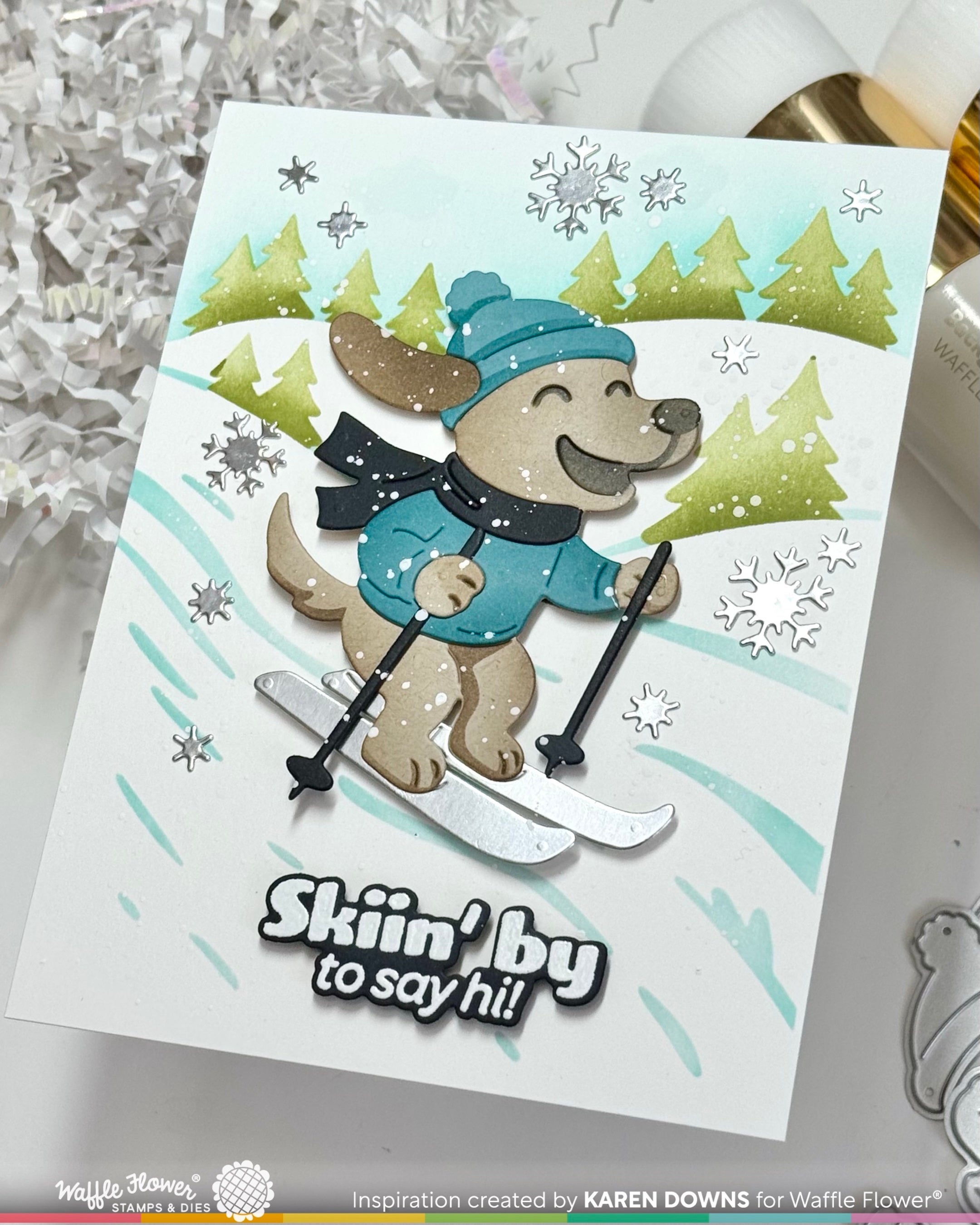 This stencil set helps you create snowy hill scenes with trails, sky, trees, and clouds. The wavy edge on stencil two lines up with the Snowy Hills Die for added definition. Use with the die and add-on die for more options.