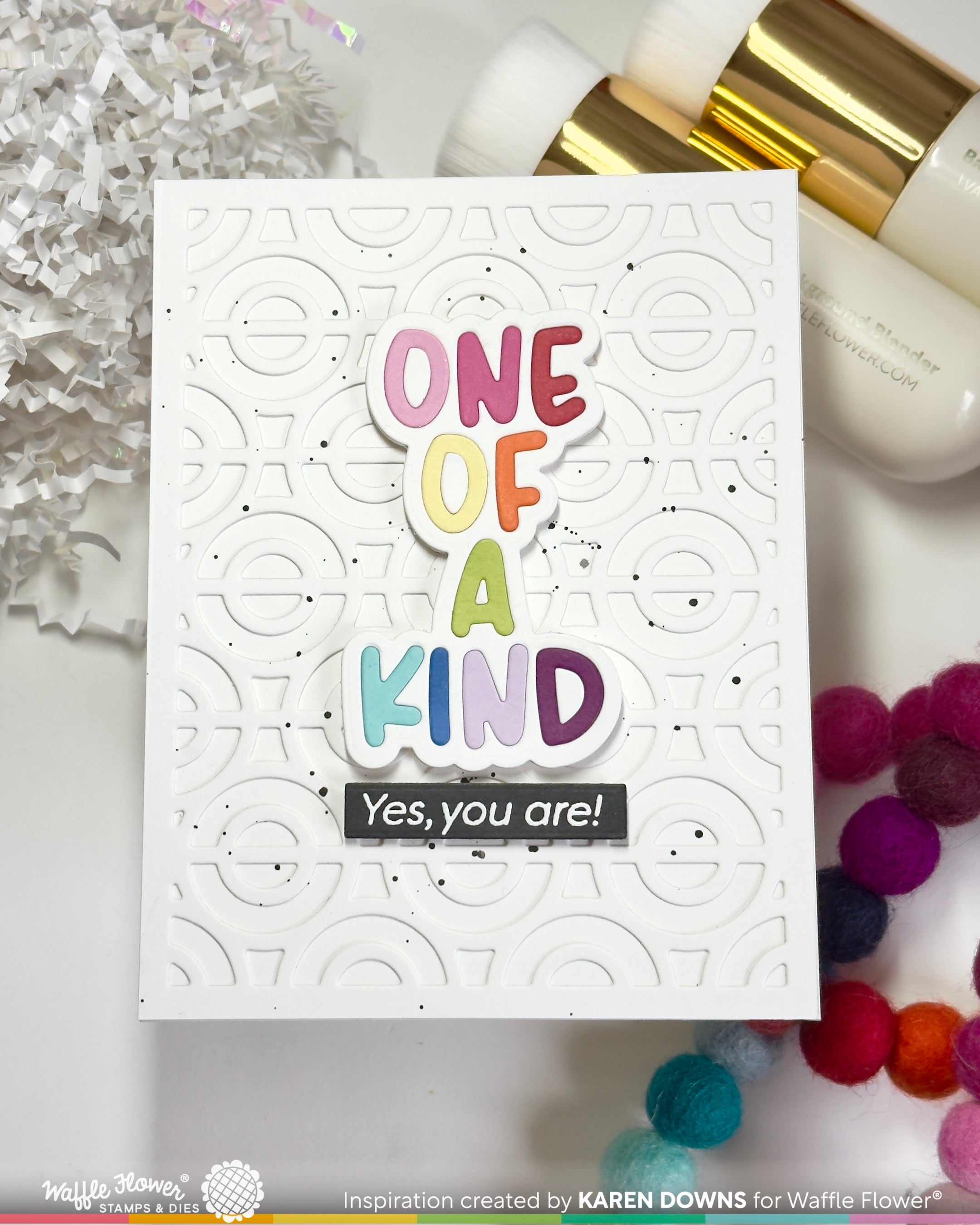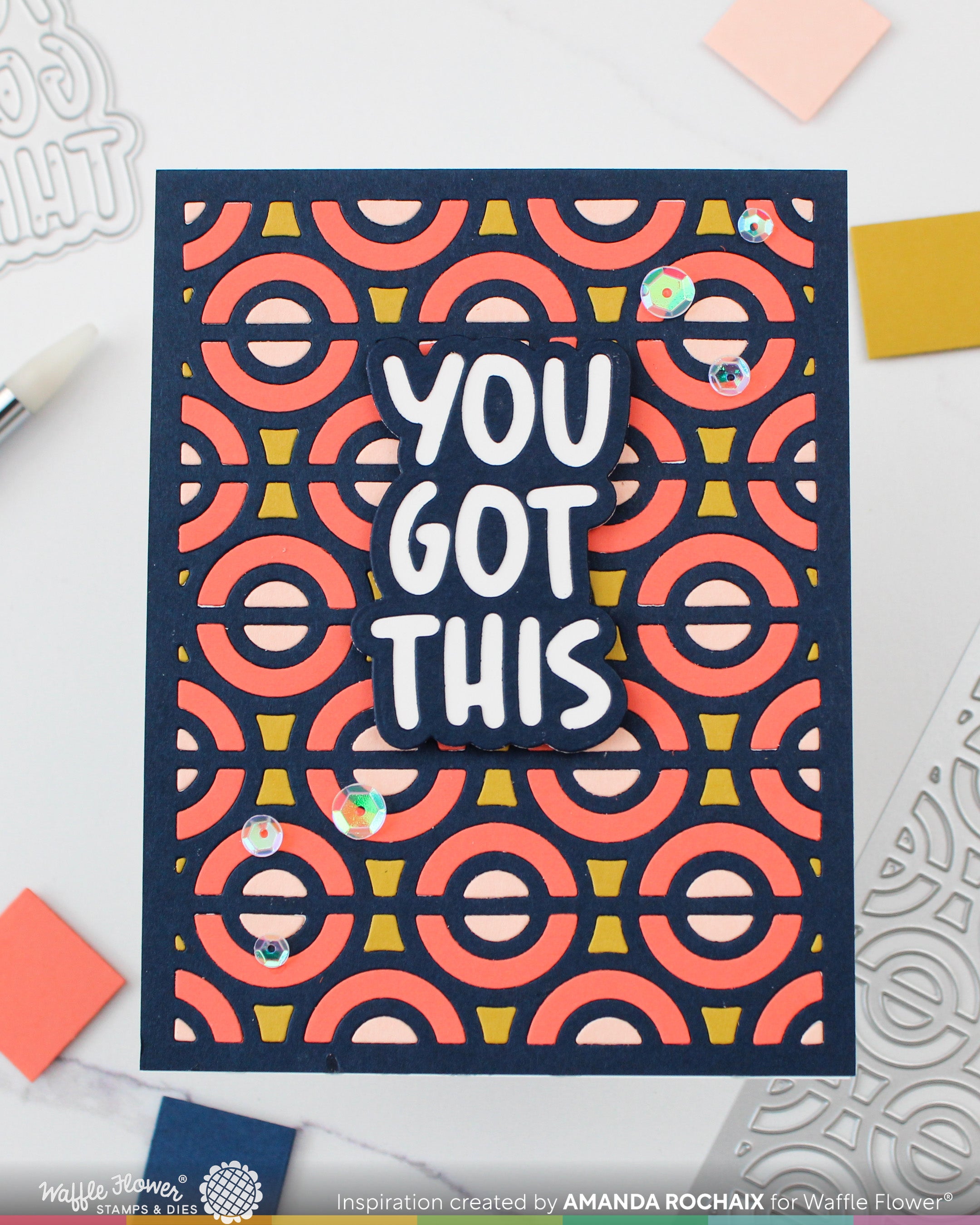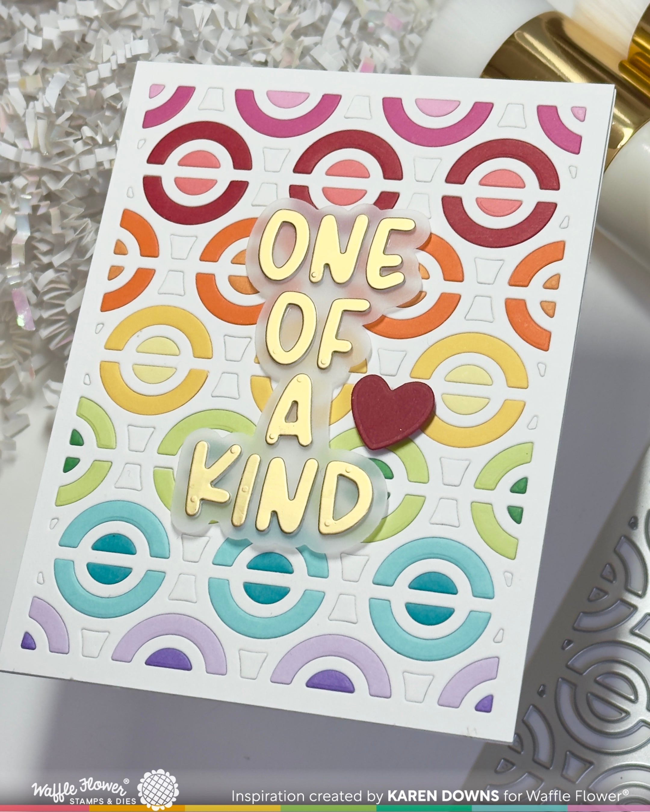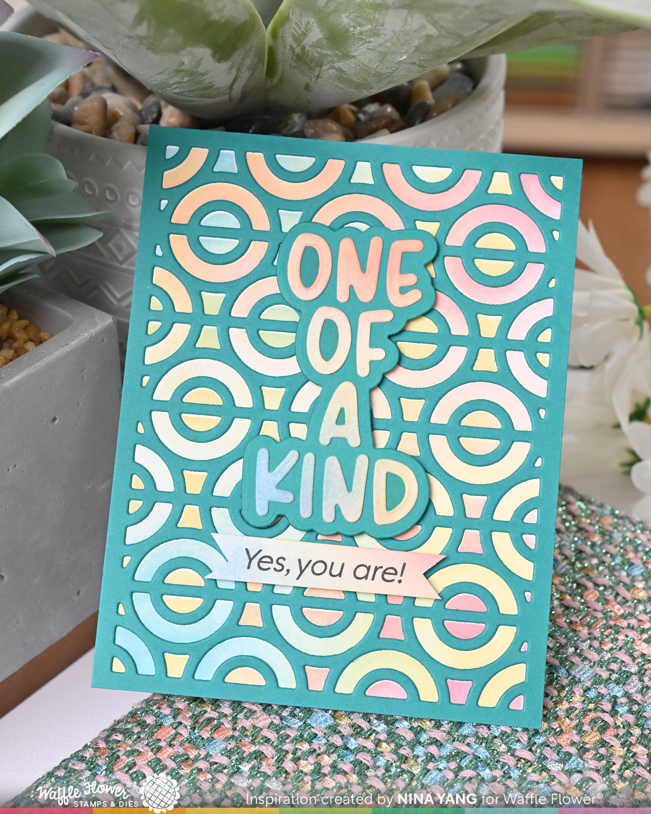 This panel die features a fun, geometric pattern of circles and bars that’s easy to style for any occasion. Cut it from colored cardstock for bold contrast, or ink blend through the matching stencil for a colorful background.