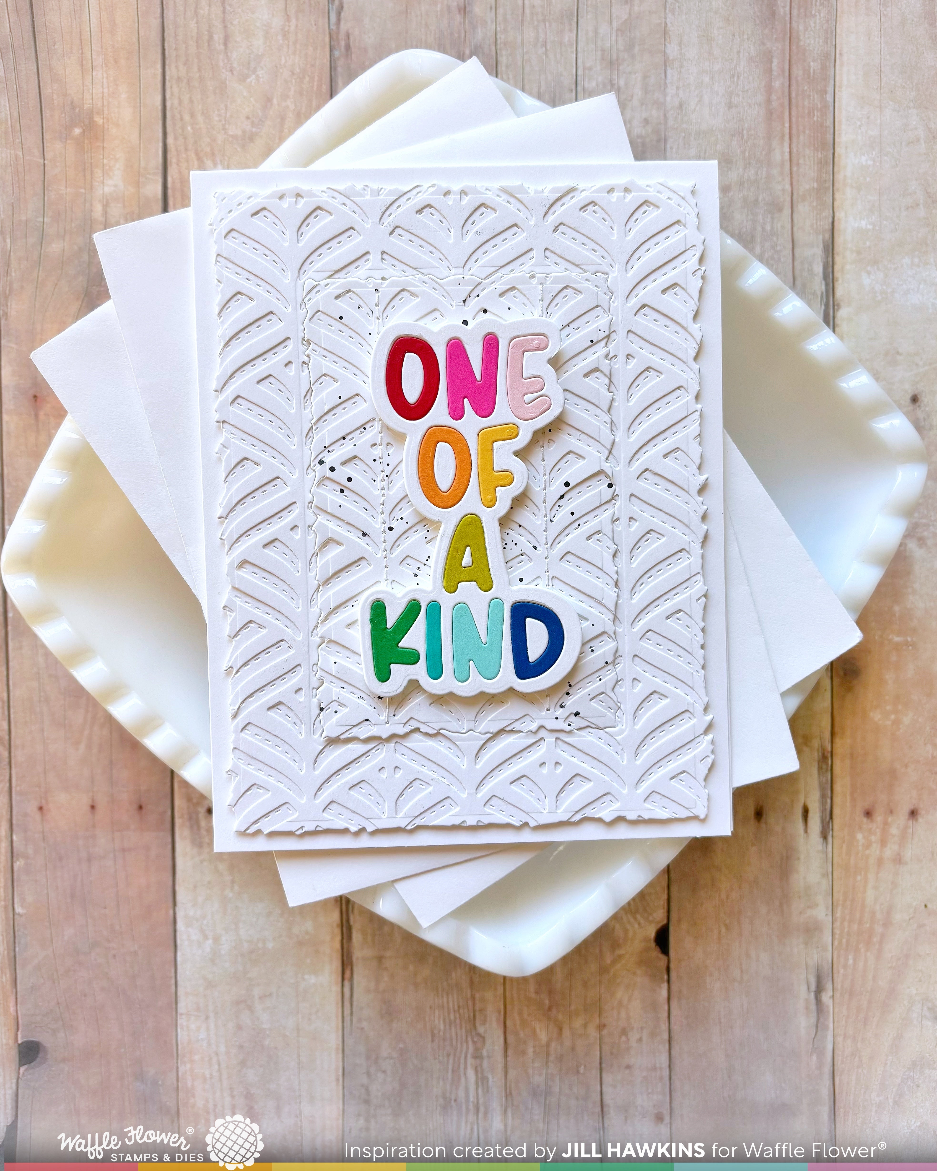This texture die adds stitched leaf details in a repeating pattern across an A2 panel. Great for adding subtle interest to card backgrounds. Layer with the Happy Leaves Panel Die, slightly offset, for a textured look.