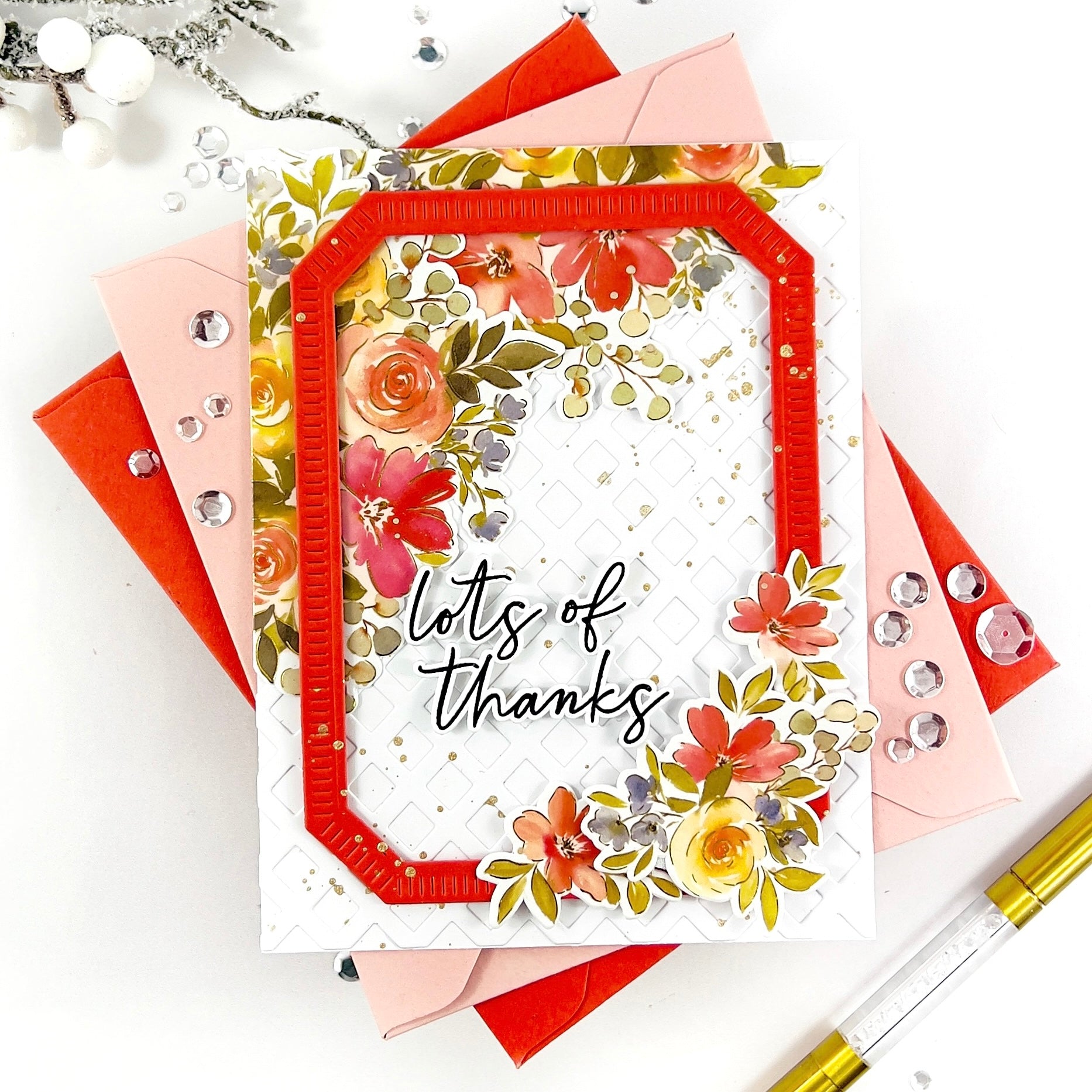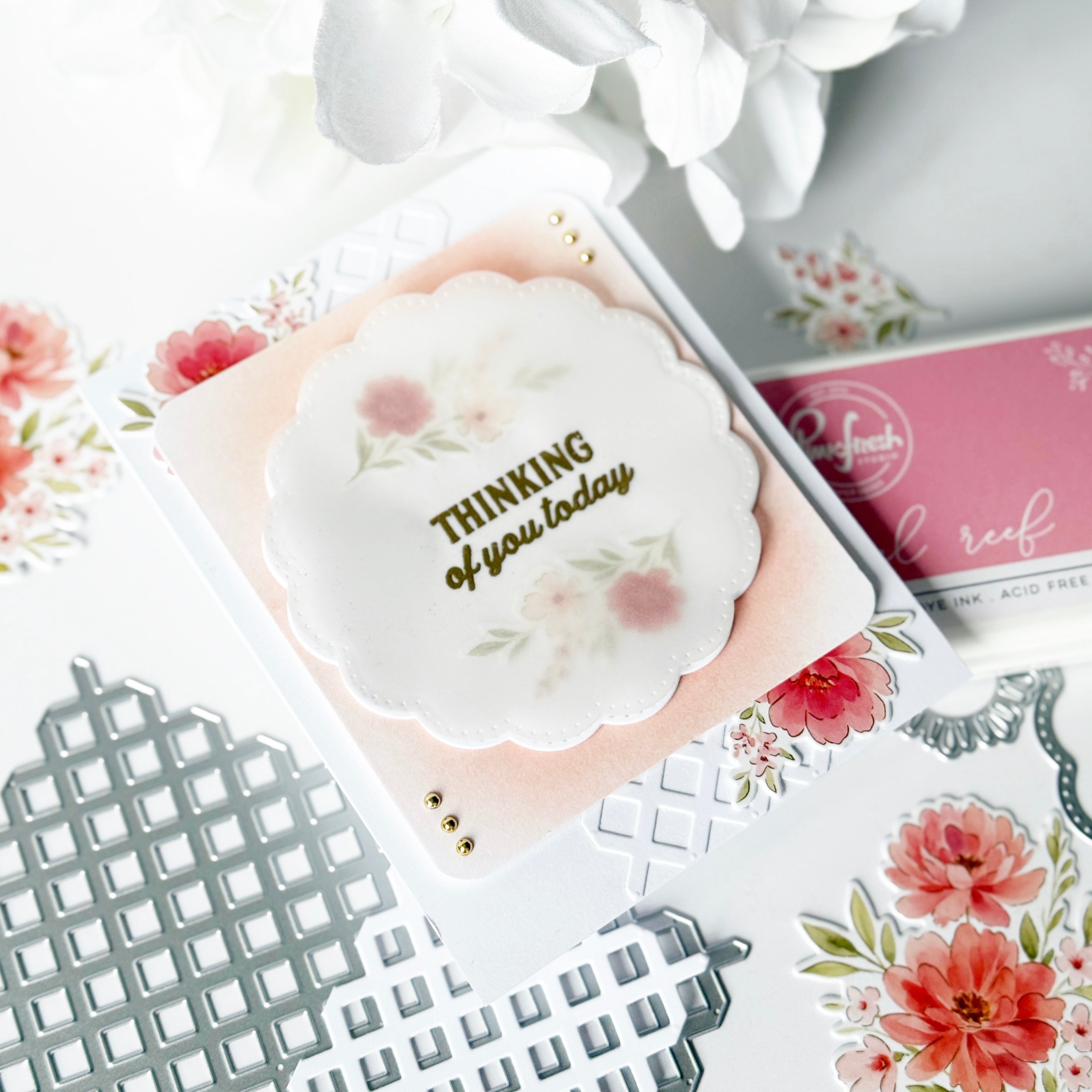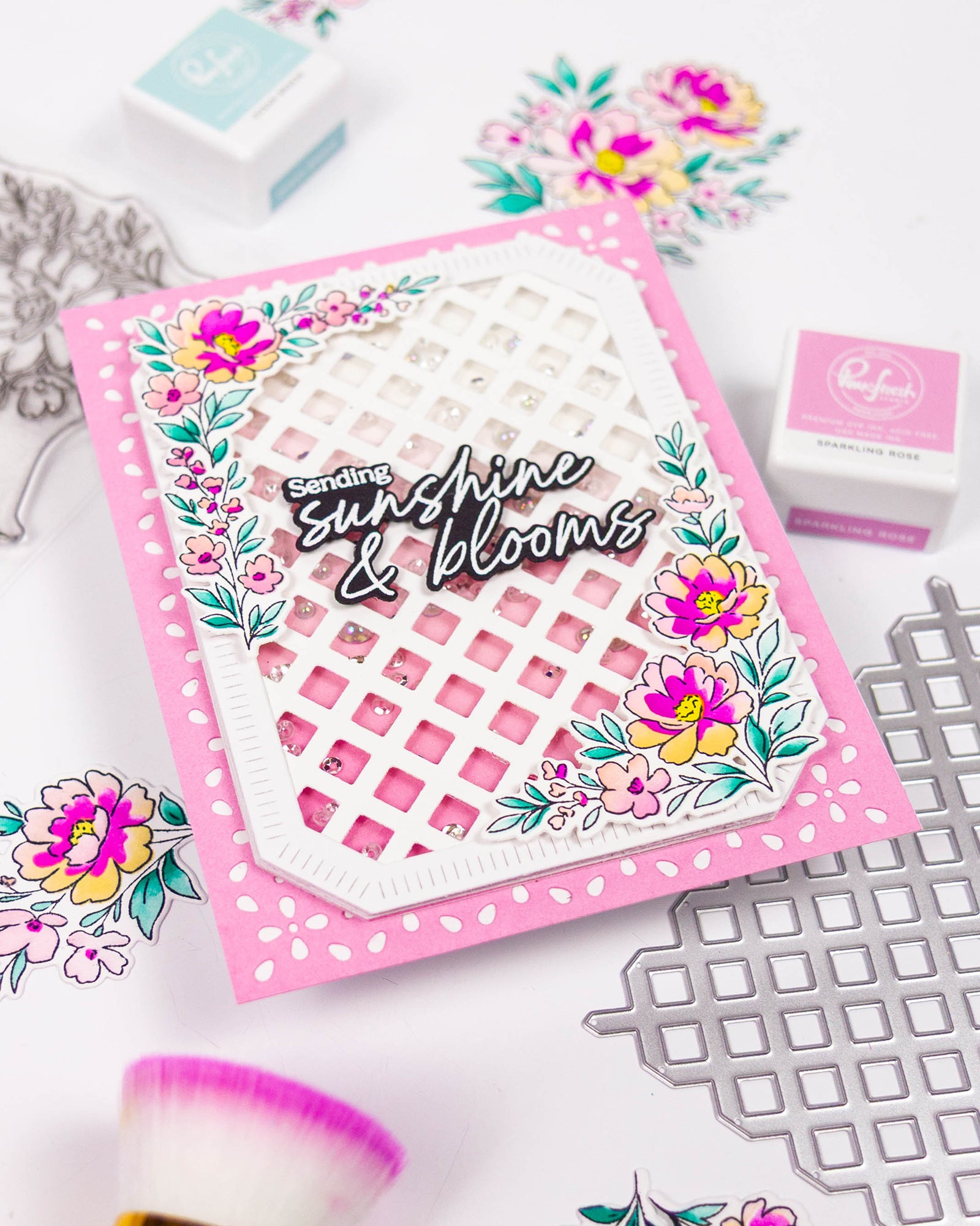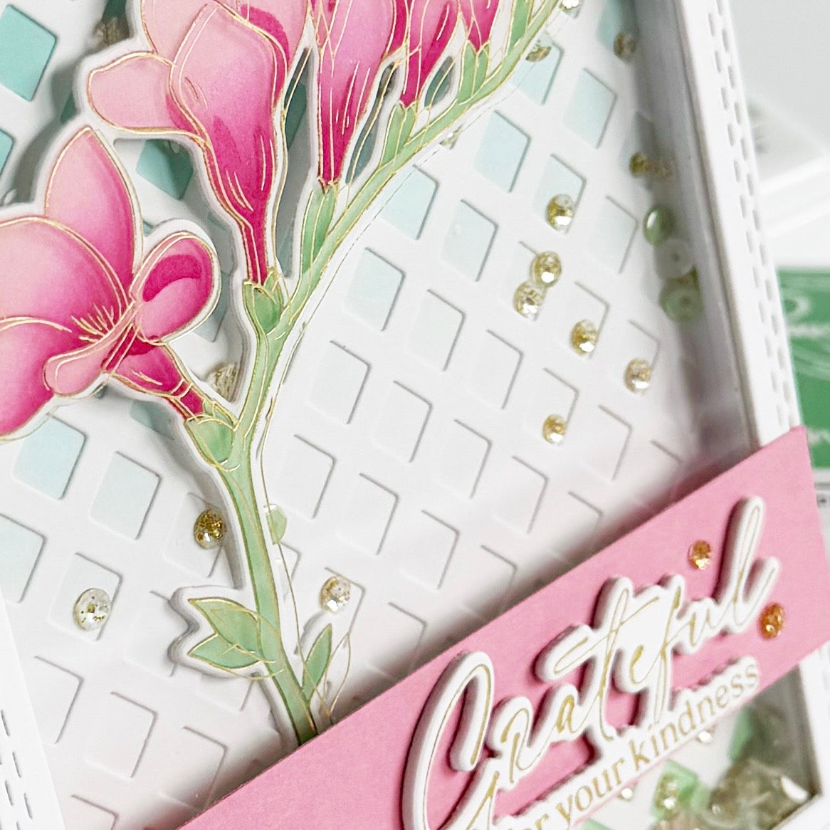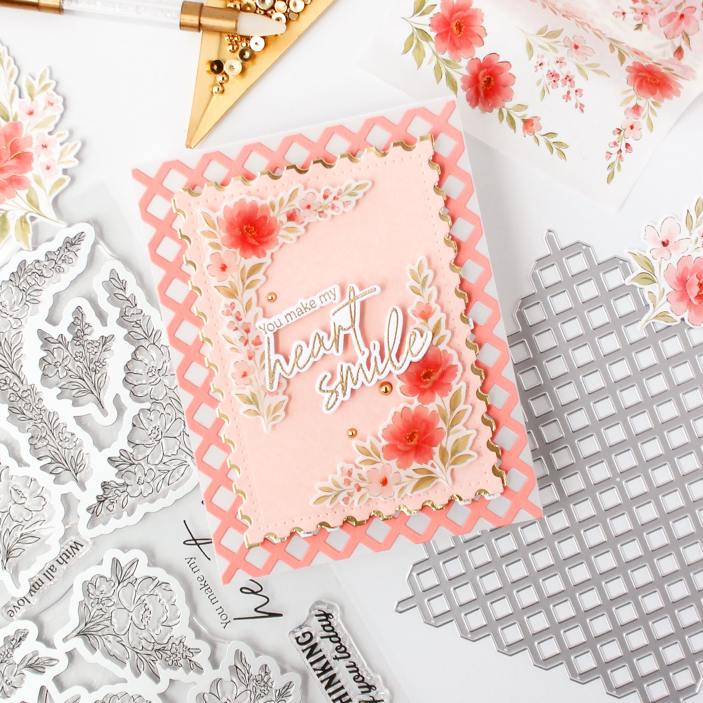 Add instant elegance with the Diamond Lattice coverplate die, designed by Kaitlin Sheaffer. This full A2 design cuts a crisp diamond grid background. Use it alone for clean dimension or layer over colorful panels. The geometric style pairs perfectly with florals, sentiments, and shaker cards.