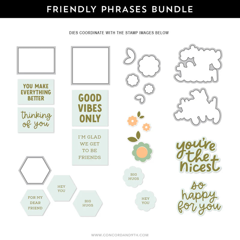 The Friendly Phrases Dies cut out the sentiments and imagery found in the coordinating Friendly Phrases Stamp Set.