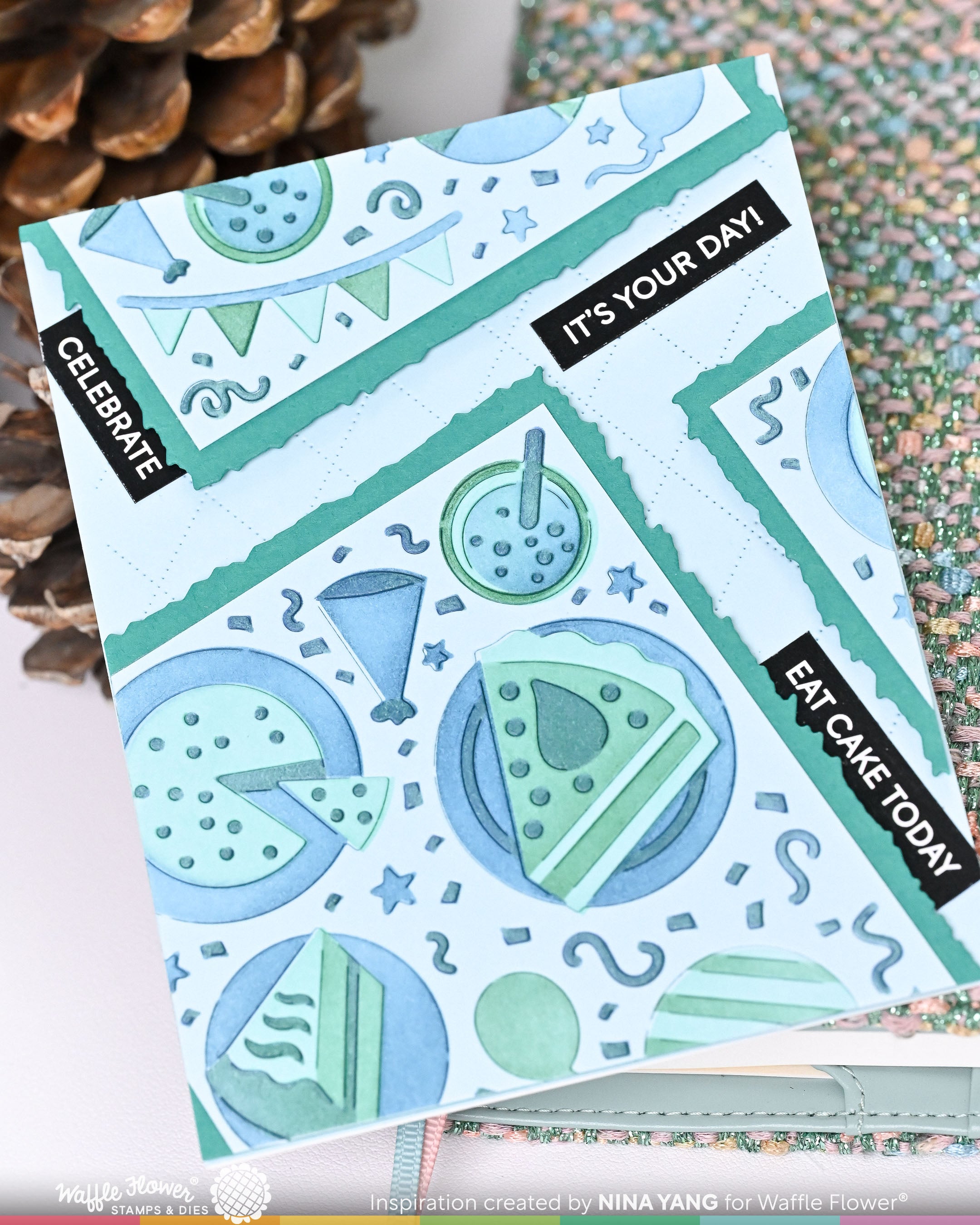 {The Cake Time Stencil gives you more flexibility for colorful looks and is ideal for adding glitter paste to the confetti, since they’re all on one layer. It has one extra stencil compared to this set}