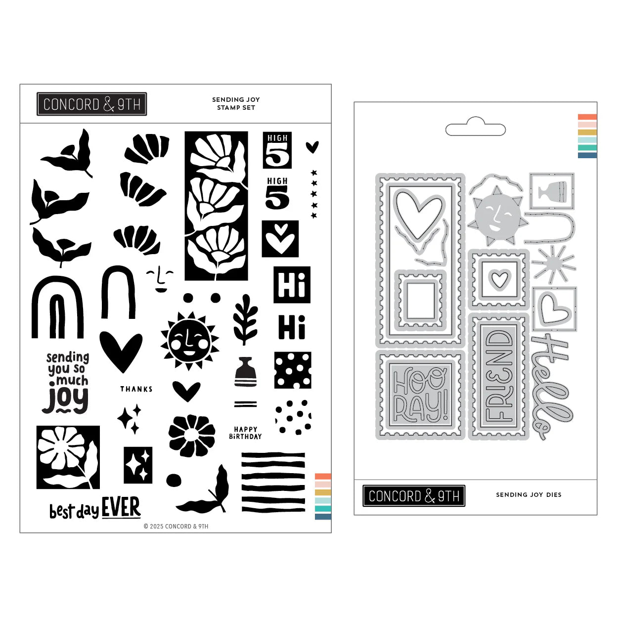 Add a little happiness to your cards with the Sending Joy Stamp Set! This set is filled with playful images that come together in 2–3 easy steps to give you colorful, layered designs. Pair them with the coordinating Sending Joy Dies to cut out each image with a fun postage-style border that’s perfect for adding sweet little accents to your projects.