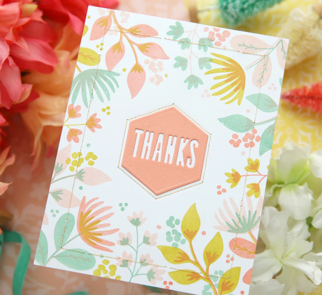 Add the perfect finishing touch to your projects with the Wild Meadow Dies! This versatile set includes a hexagon and circle that perfectly cut around the greetings from the coordinating Wild Meadow Turnabout™ Stamp Set. The hexagon die also has a drop-in “thanks” for an additional sentiment option. Create subtle yet stunning metallic details with the leafy piercing dies, or add stitched accents around your sentiments using the circle and hexagon piercing dies.