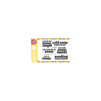 This stamp set features playful sayings perfect for winter projects. This set pairs beautifully with critter designs and snowy scenes.