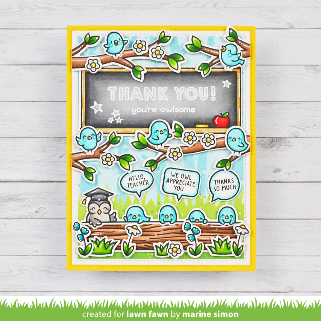 Let’s give a great big “hoot” for our teachers! This set is an adorable way to share appreciation for the teachers that inspire and nurture our students. This set includes a sweet border-style critter class, speech bubbles, and lots of great sentiments for any project.