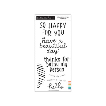 The Scalloped Petals Stamp Set provides uplifting sentiments that are sized to fit the large flower shaped cards created with the coordinates with the Scalloped Petals Dies and a patterned leaf design.
