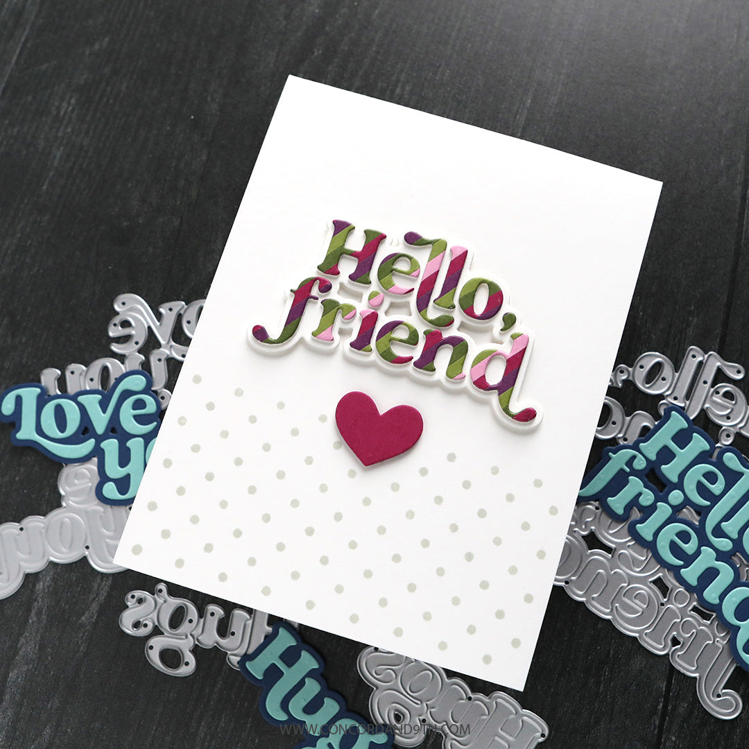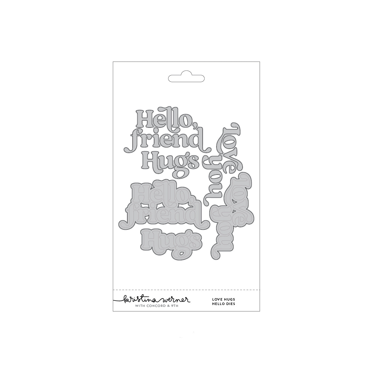 Add fun and friendly greetings to your cards with the Love Hugs Hello Dies. Includes three greetings, plus shadow dies. The shadow dies press the individual letters into the cardstock to aid in perfect placement of the individual letters of the greetings. 6 pieces.