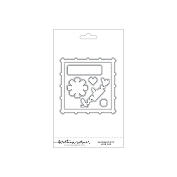 Perfectly cut out elements from the Handmade With Love Stamp Set with the Handmade With Love Dies. Dies include the full stamped pattern, just the square segment, large flower, flower center, heart, and greetings.