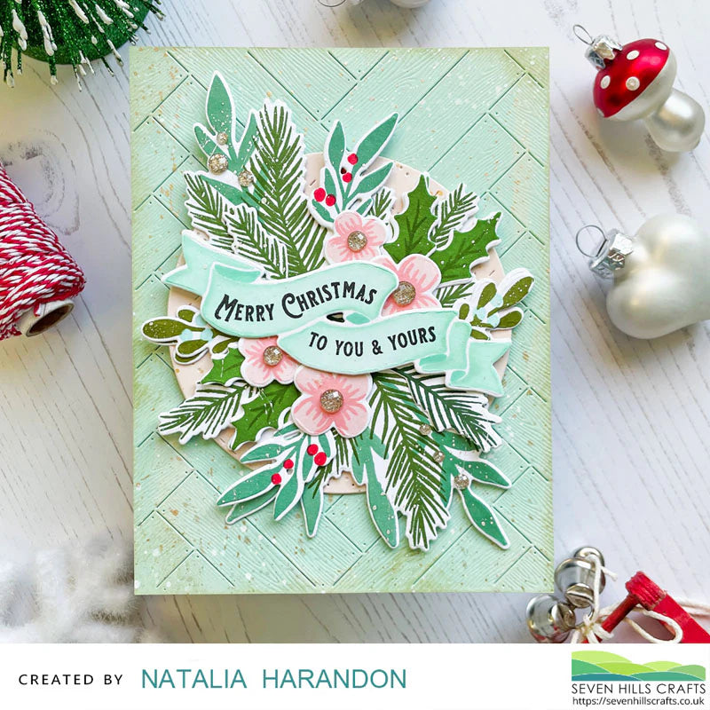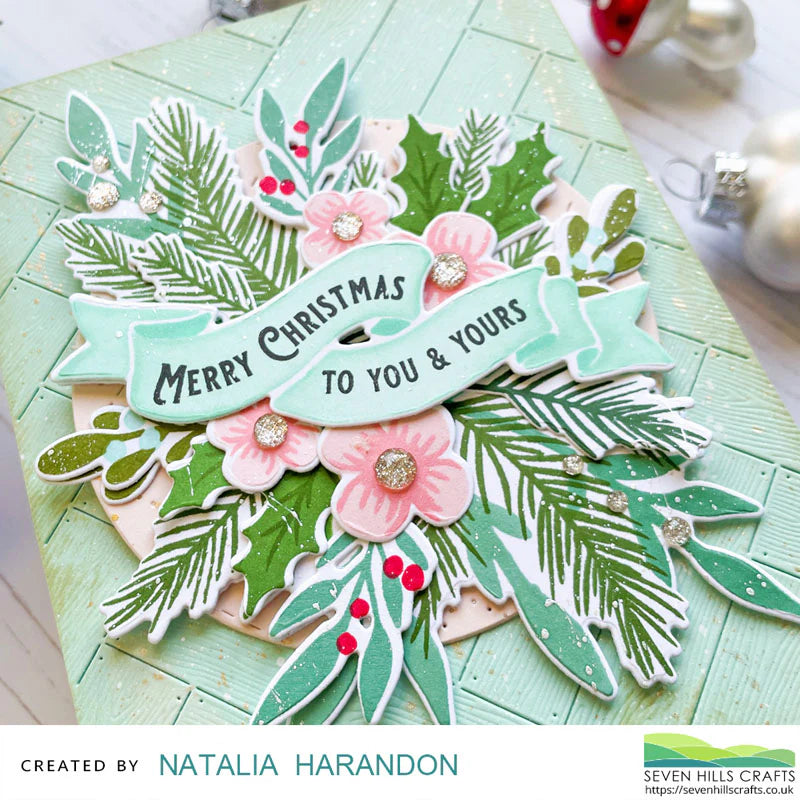 Create beautiful focal points using this stamp + stencil set! The stamp and stencil combo makes it quick and easy to produce beautiful holiday cards, perfect for mass-producing during the busy holiday season. The stamp set also includes individual floral and leaf elements for the option to get creative with your own arrangements, step it up with layers, or create matching tags, and more. You'll have fun experimenting with different color combos for lots of different looks!
