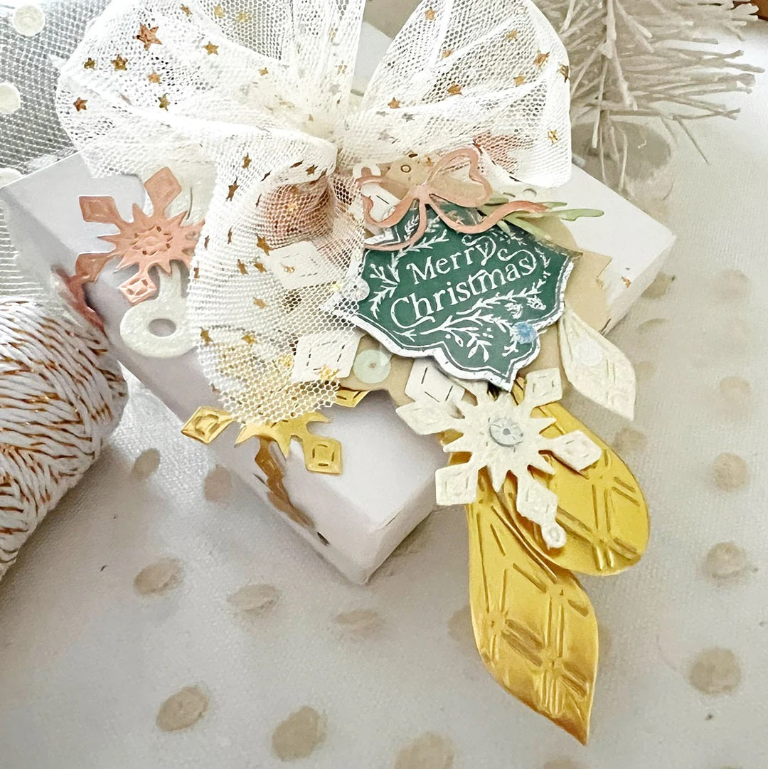 This pretty tag die coordinates with our Inside & Out Holiday Tags stamp, allowing you to create more layered tags. The set includes two tag bases, some greenery sprigs, and a pretty bow.