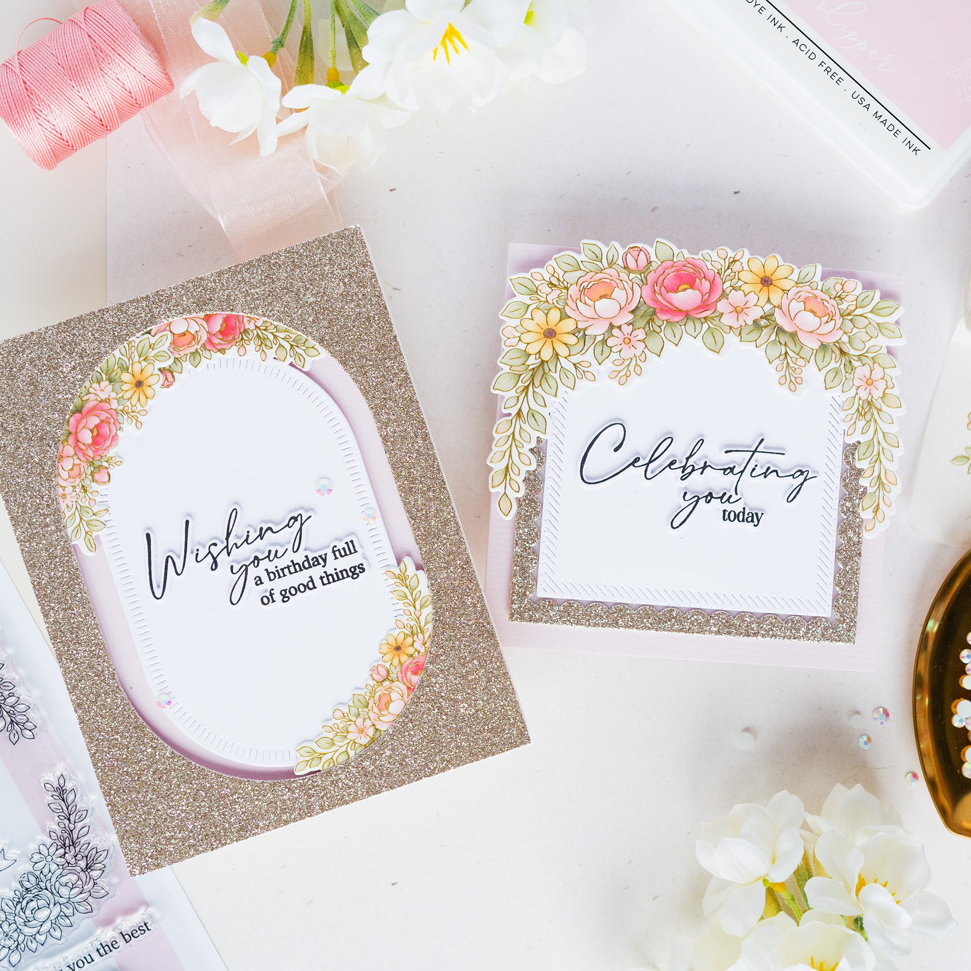 Add lush floral beauty to your projects with the Celebrate in Blooms washi, designed by Kinnari Zaveri. This stunning design features a full-bouquet centerpiece, along with elegant floral clusters and wreath arrangements, perfect for creating sophisticated card designs with minimal effort. Each image is accented with gold foil for added elegance.