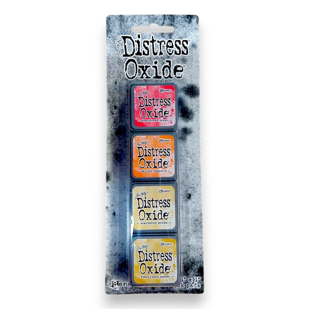Tim Holtz® Distress Mini Oxide Ink Pads are a collection of 1” x 1” cubes featuring water-reactive dye & pigment ink fusion that creates an oxidized effect when sprayed with water.